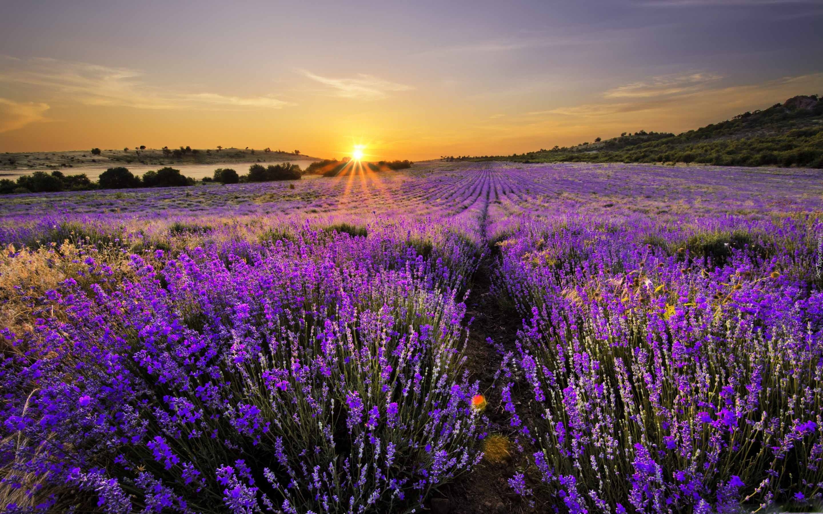 Edytor tapety: Zachód, Słońca, Lawendowe, Pole