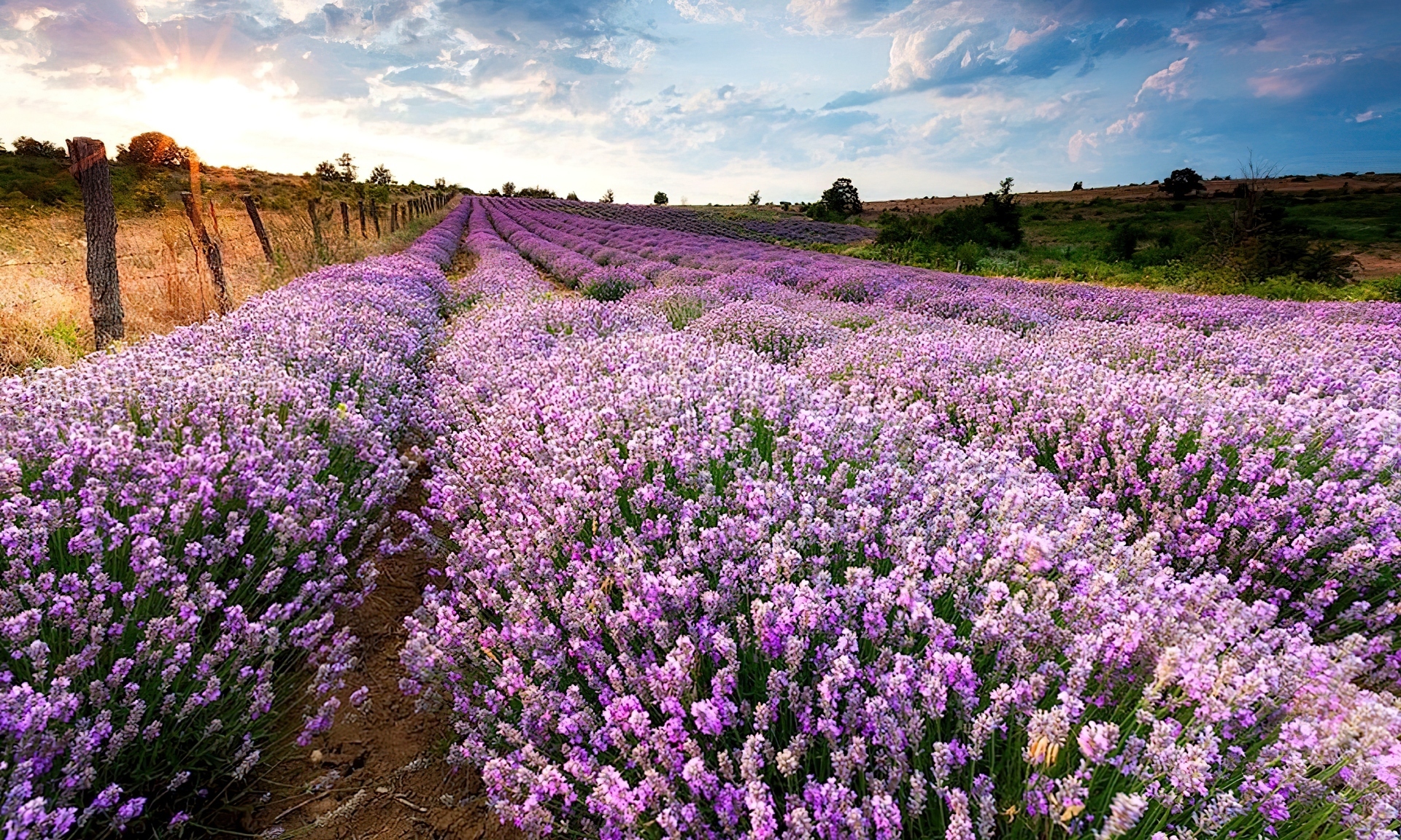 Edytor tapety: Plantacja, Lawendy, Kwiaty, Niebo