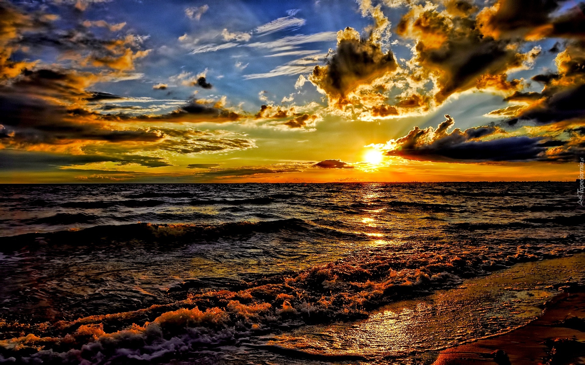 Edytor tapety: Zachód, Słońca, Morze, Fale