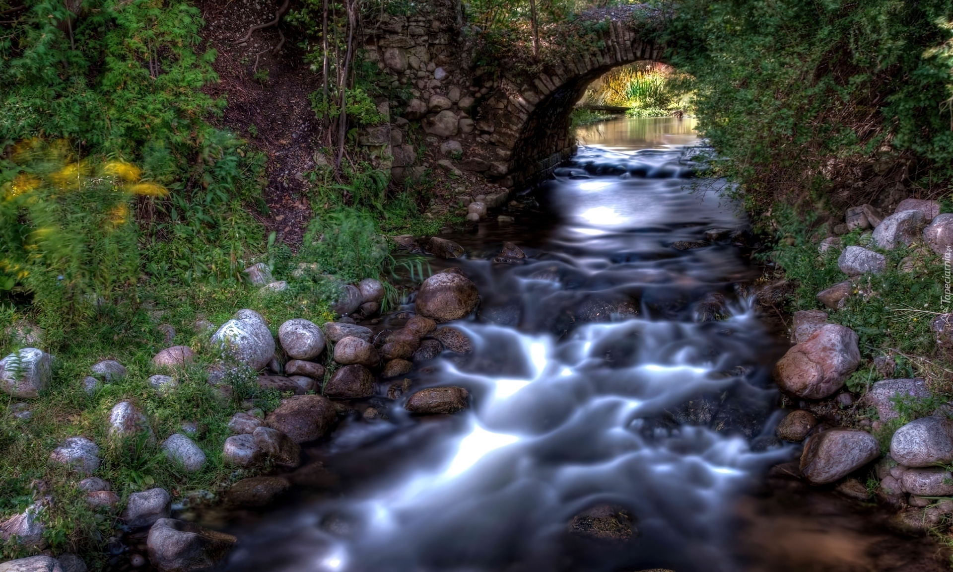 Edytor tapety: Mostek, Strumyk, Kamienie, Zarośła