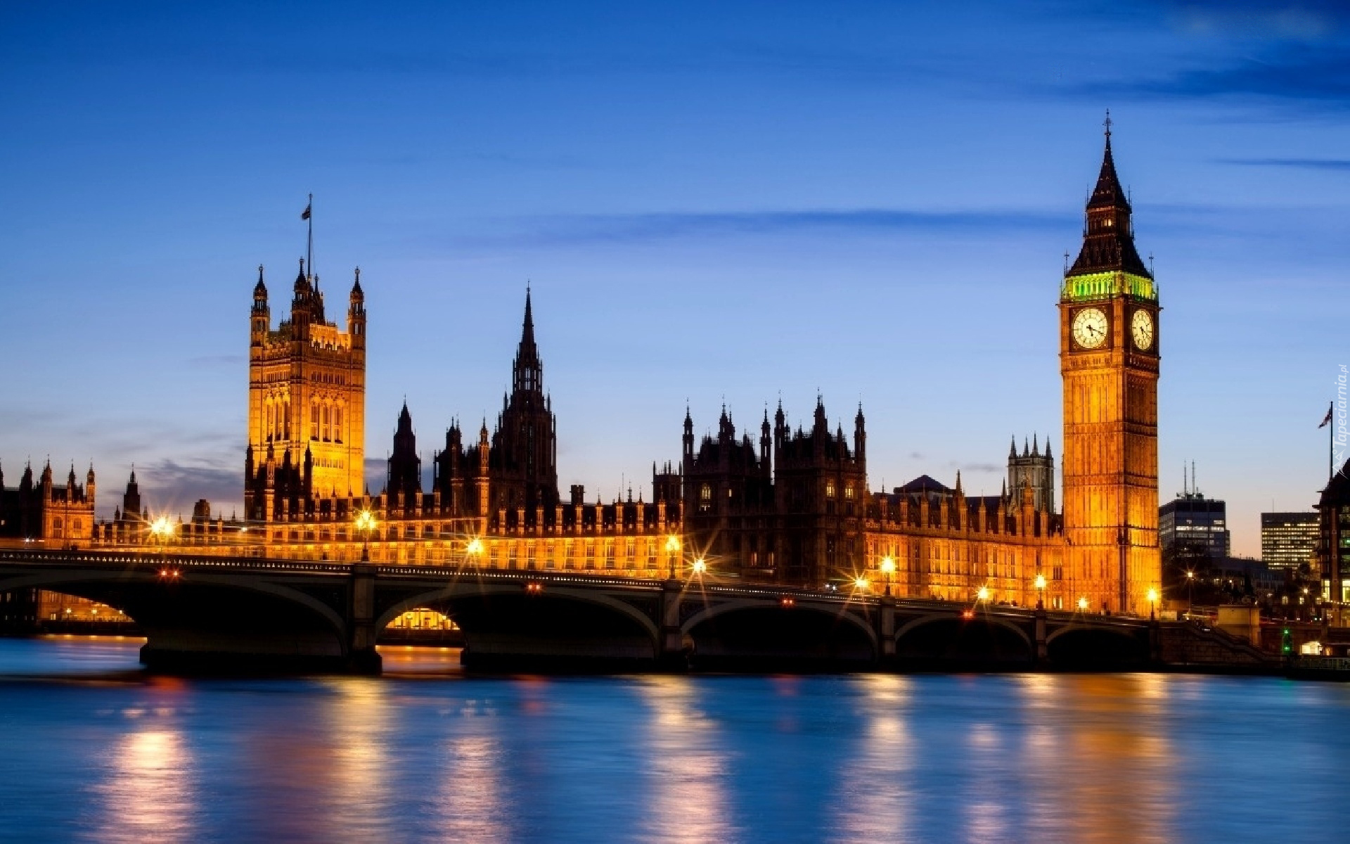 Edytor tapety: Londyn, Nocą, Rzeka, Most