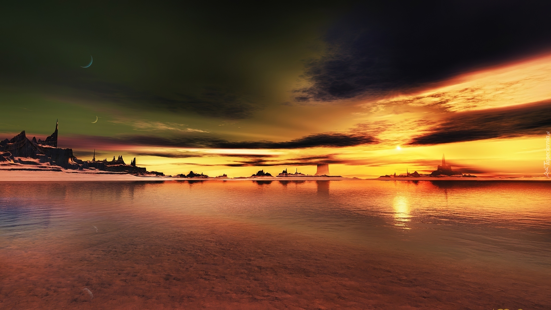 Edytor tapety: Kosmos, Woda, Zachód, Słońca