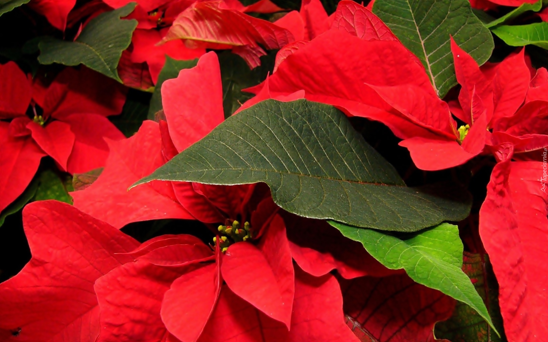 Edytor tapety: Kwiaty, Czerwone, Liście, Gwiazda Betlejemska