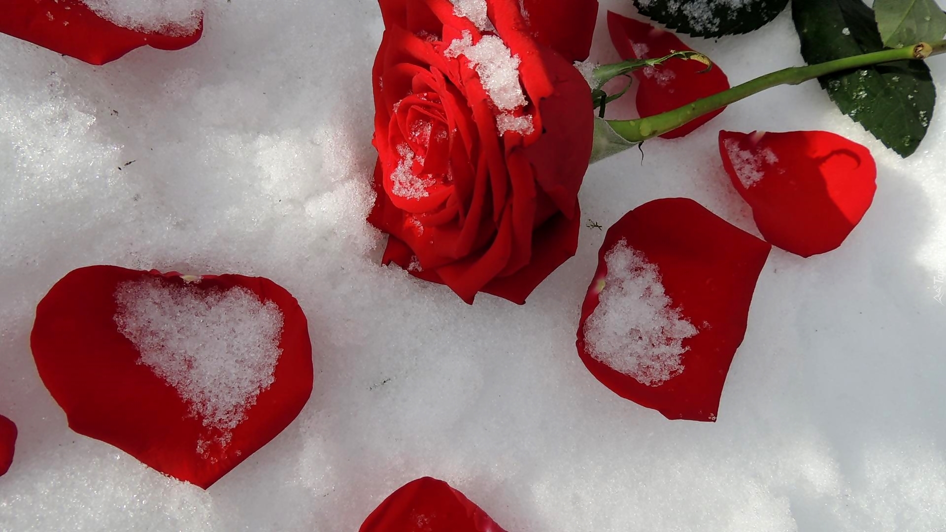 Edytor tapety: Róża, Płatki, Kształt, Serca, Liście, Śnieg
