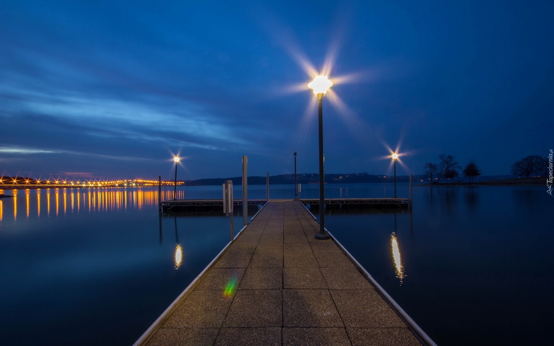 Edytor tapety: Jezioro, Oświetlone, Molo