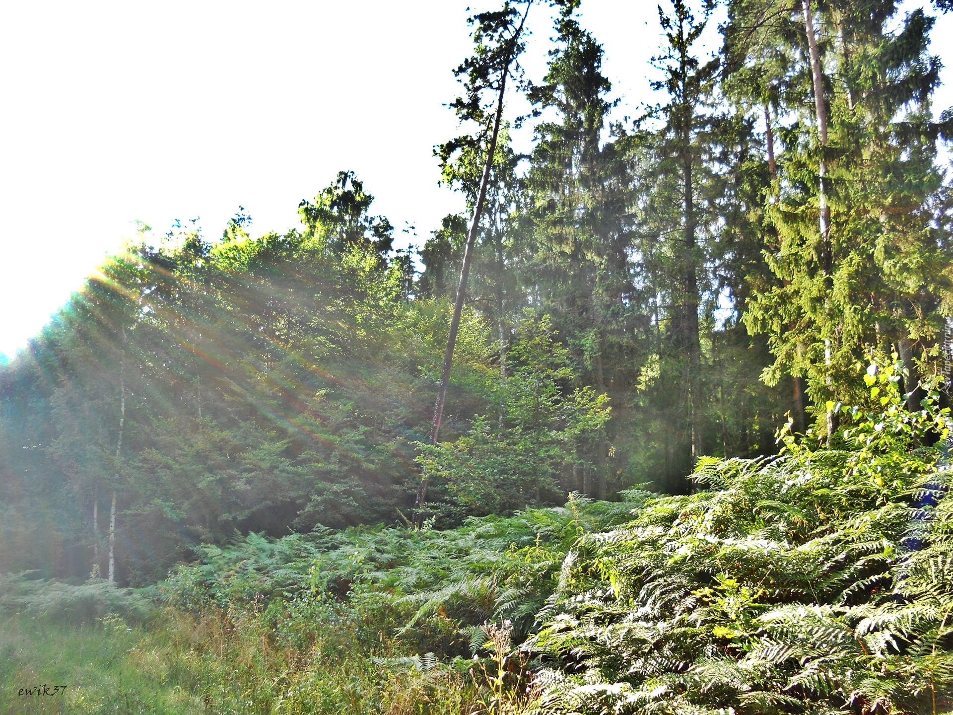 Edytor tapety: Las, Polana, Przebijające, Słońce