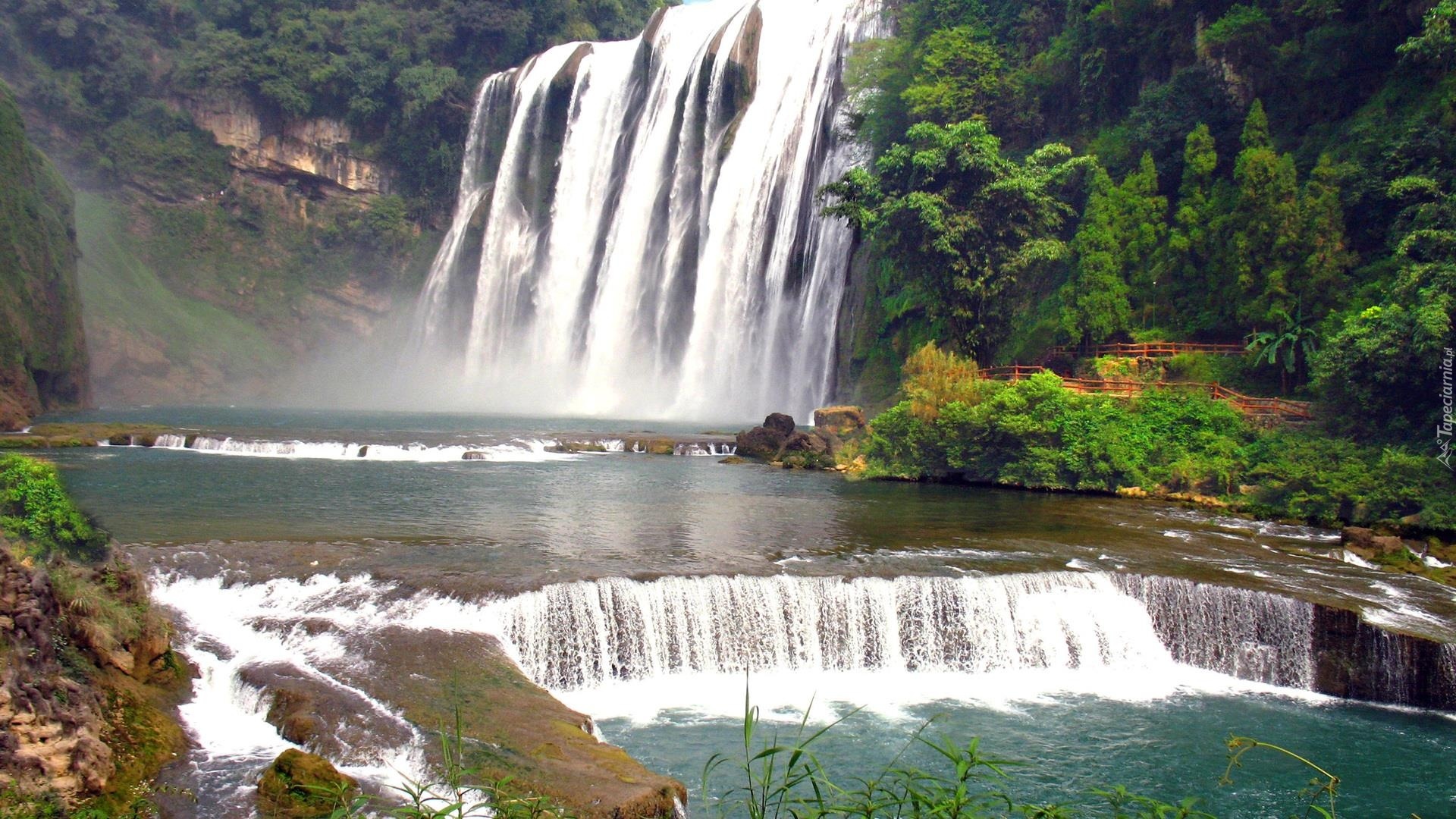 Edytor tapety: Wodospady, Góry, Skały, Roślinność