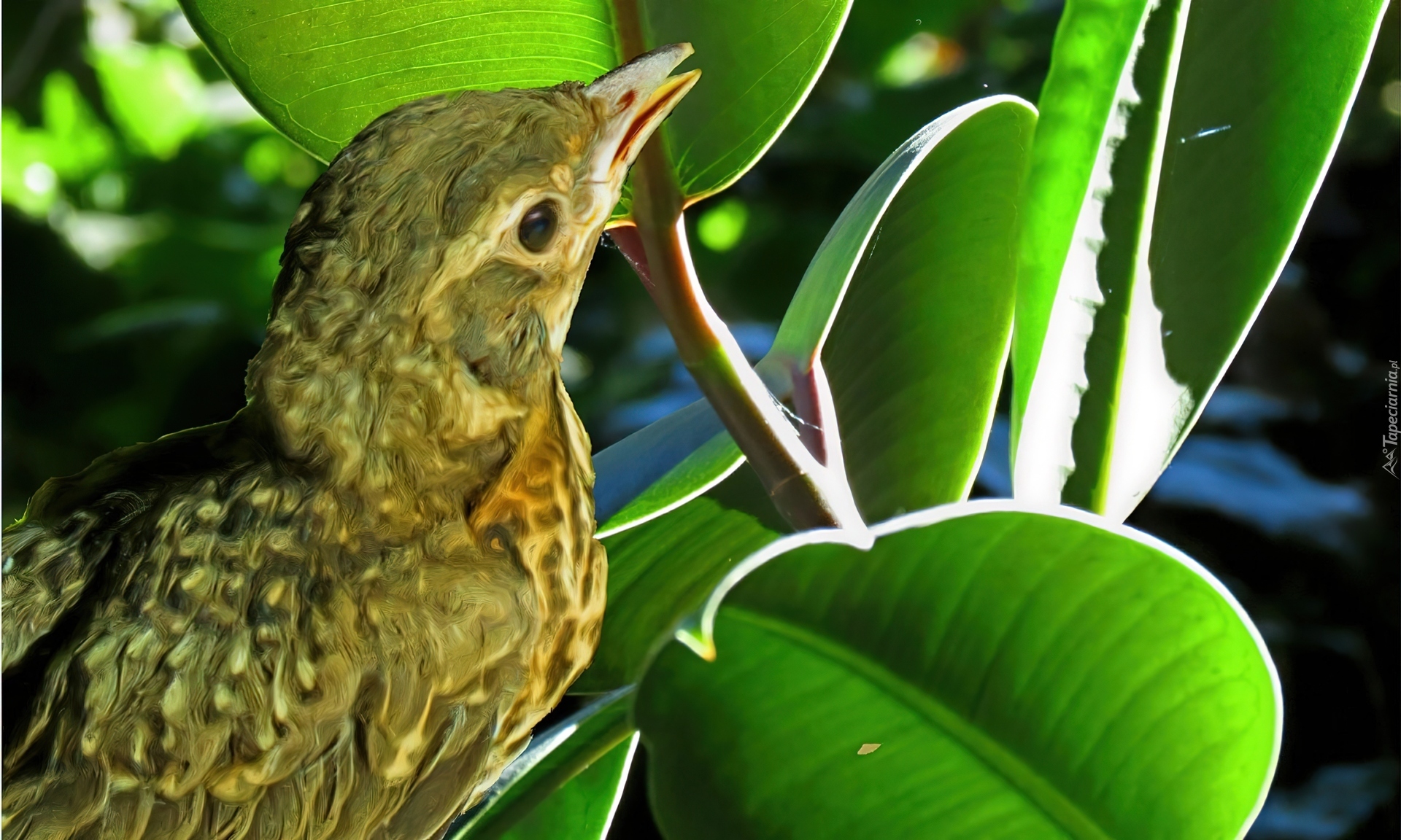 Edytor tapety: Ptaszek, Gałązka, Liście