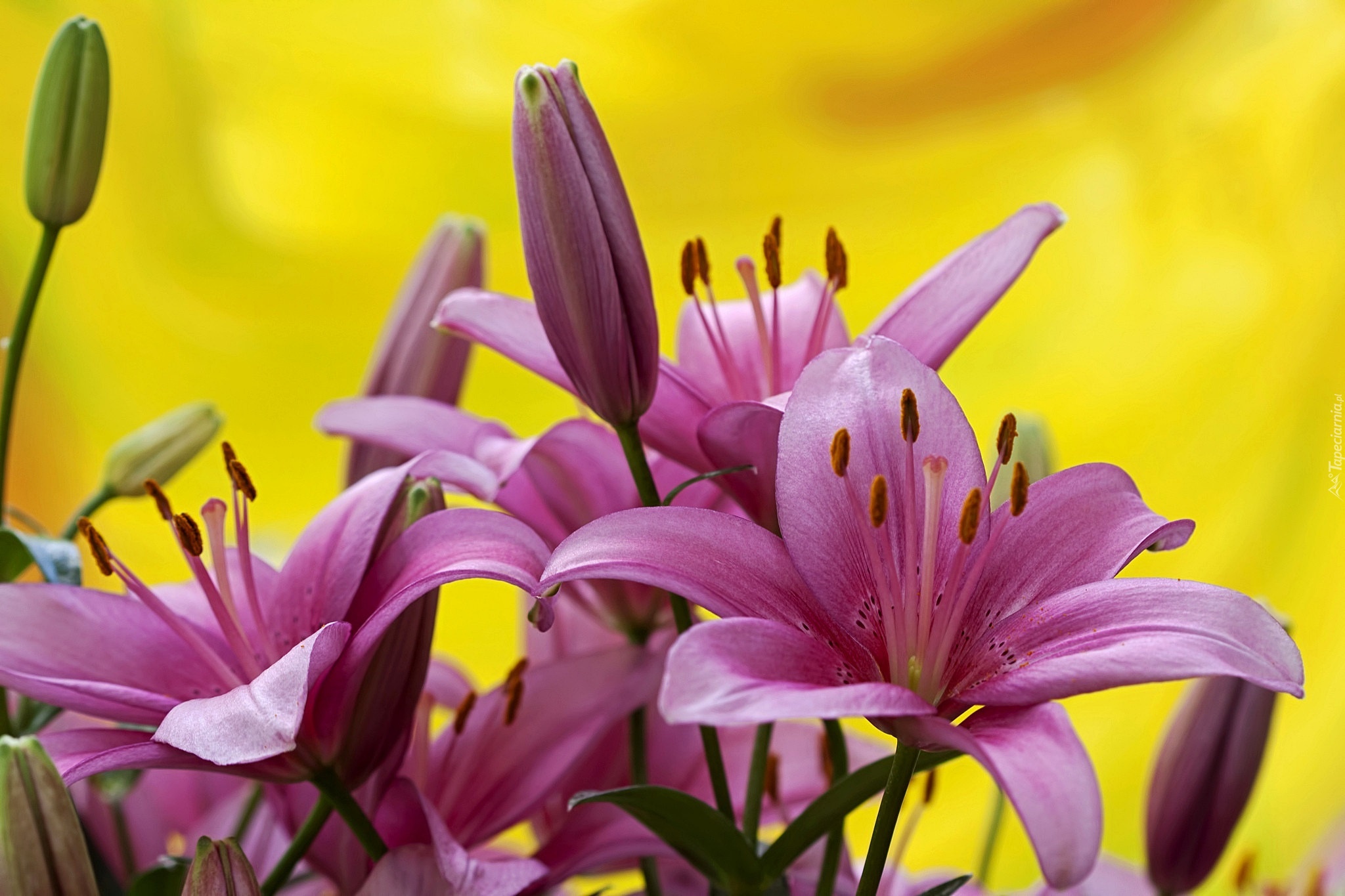 Edytor tapety: Fioletowe, Lilie, Żółte, Tło
