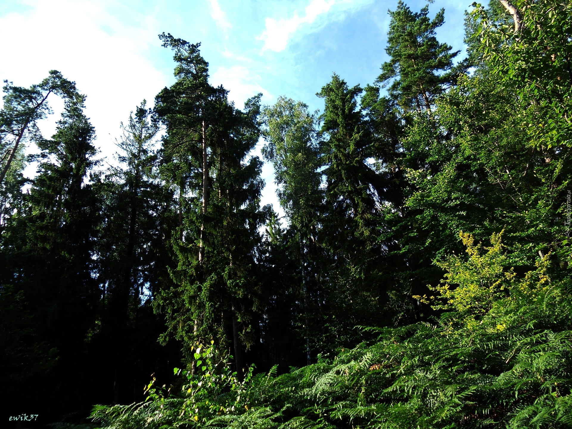 Edytor tapety: Las, Olbrzymie, Drzewa, Turkusowe, Niebo