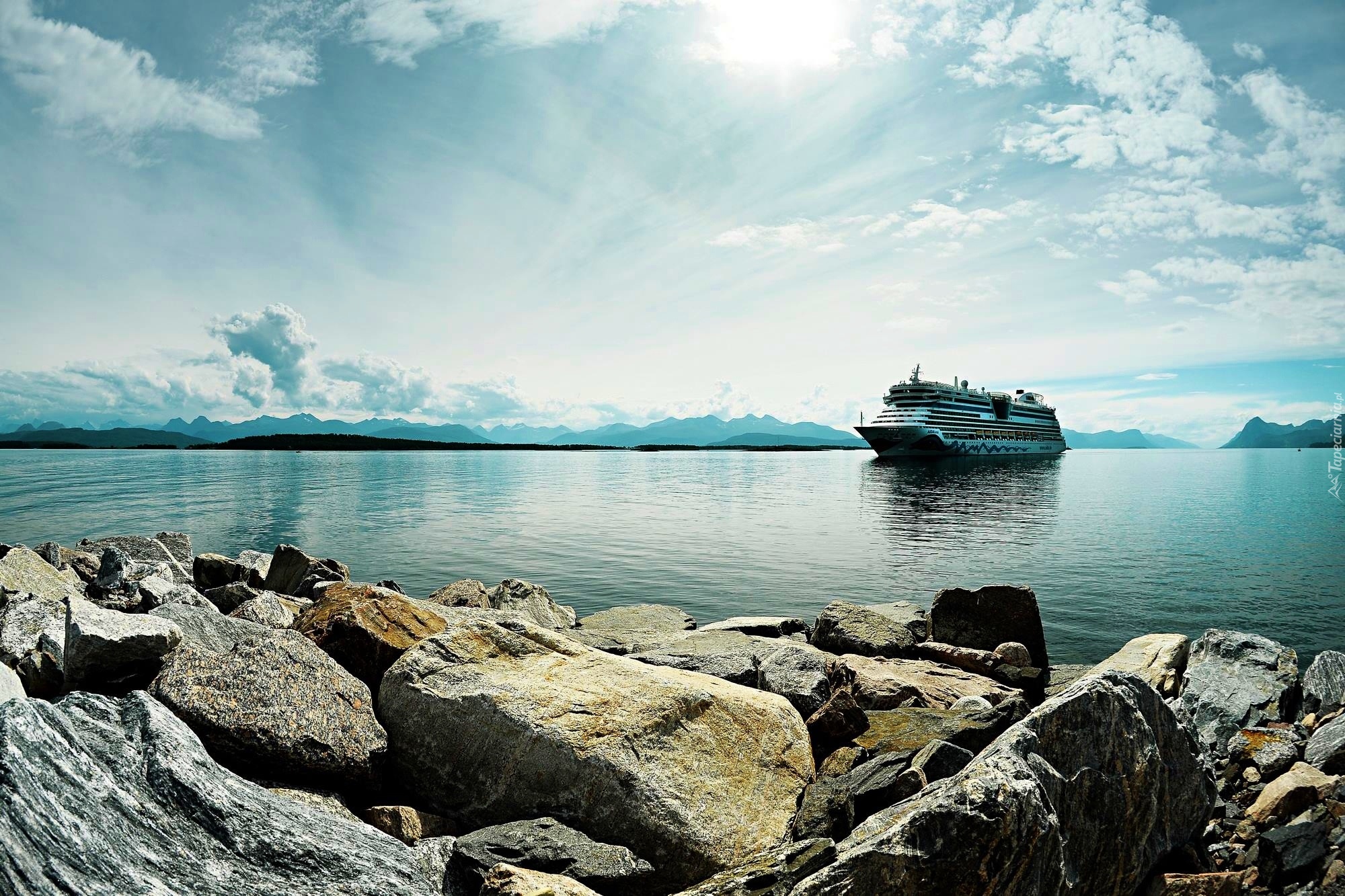 Edytor tapety: Morze, Kamienie, Statek, Niebo