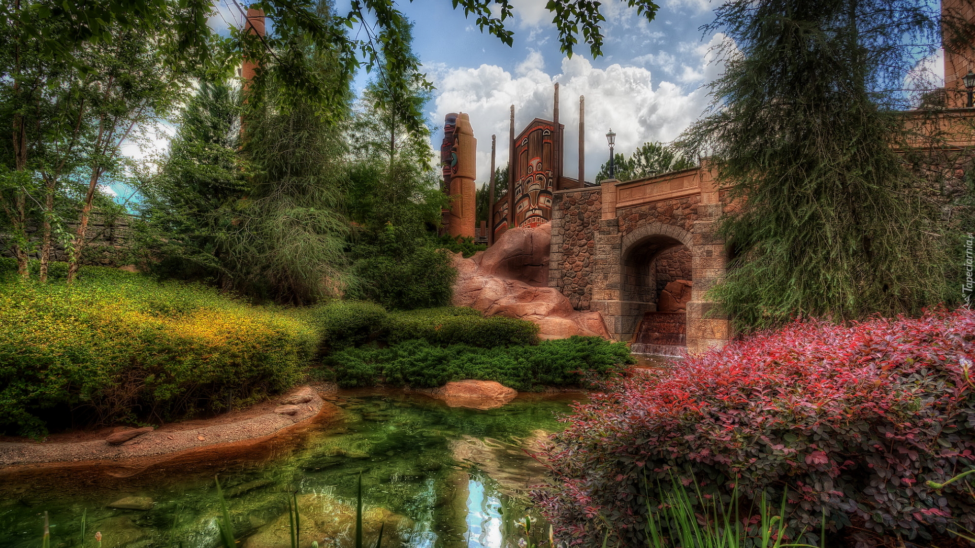 Edytor tapety: Rzeczka, Mur, Roślinność, Drzewa