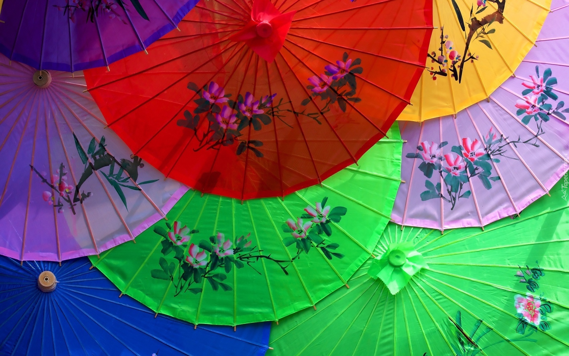 Edytor tapety: Japońskie, Parasolki, Kolorowe, Kwiatuszki
