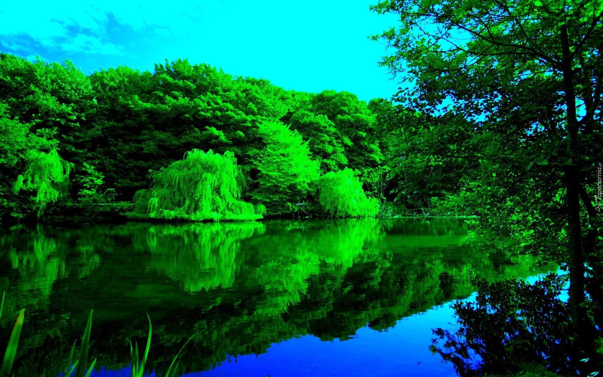 Edytor tapety: Rzeka, Zielone, Drzewa