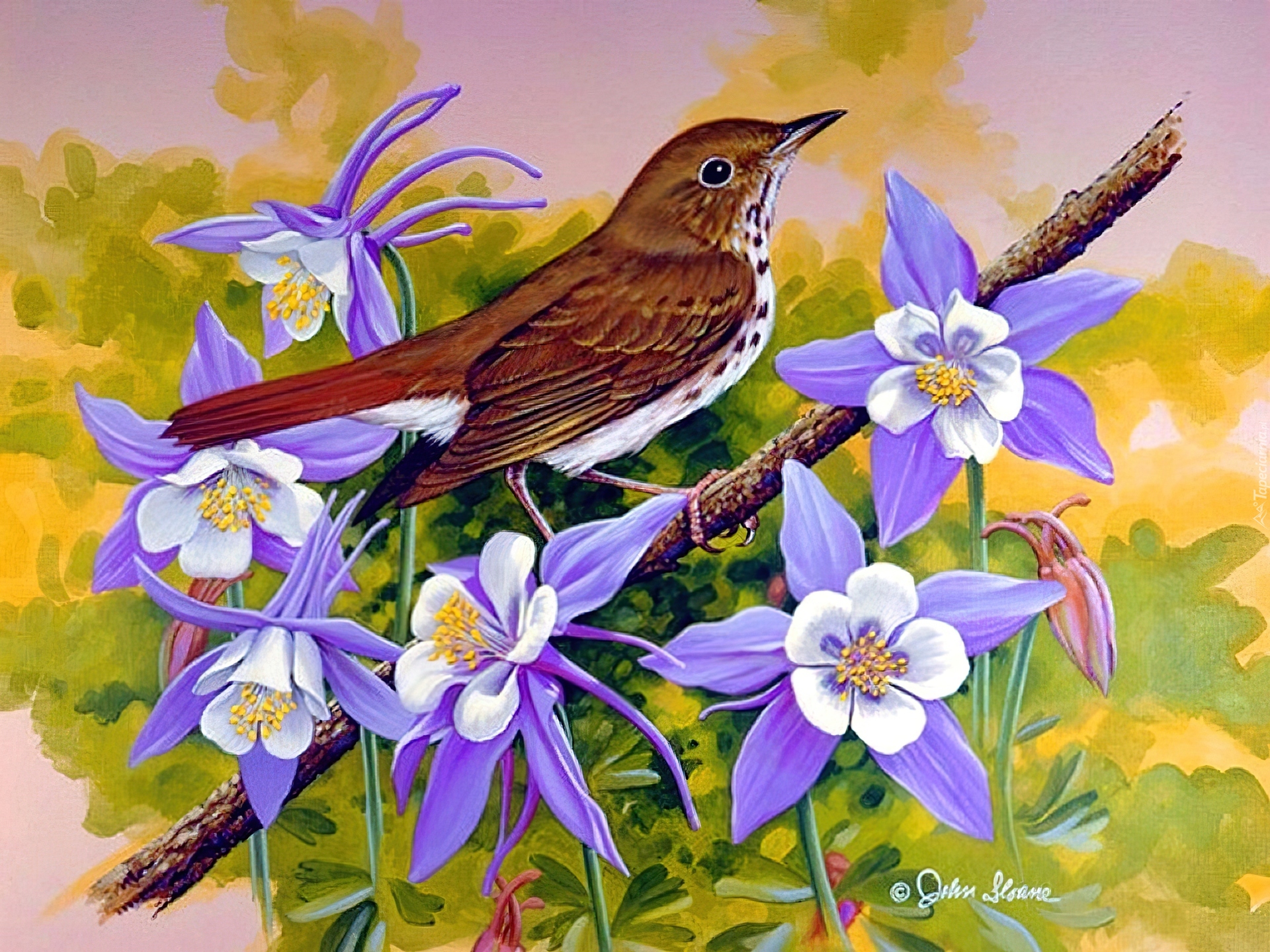 Edytor tapety: Ptak, Kwiaty, Liście