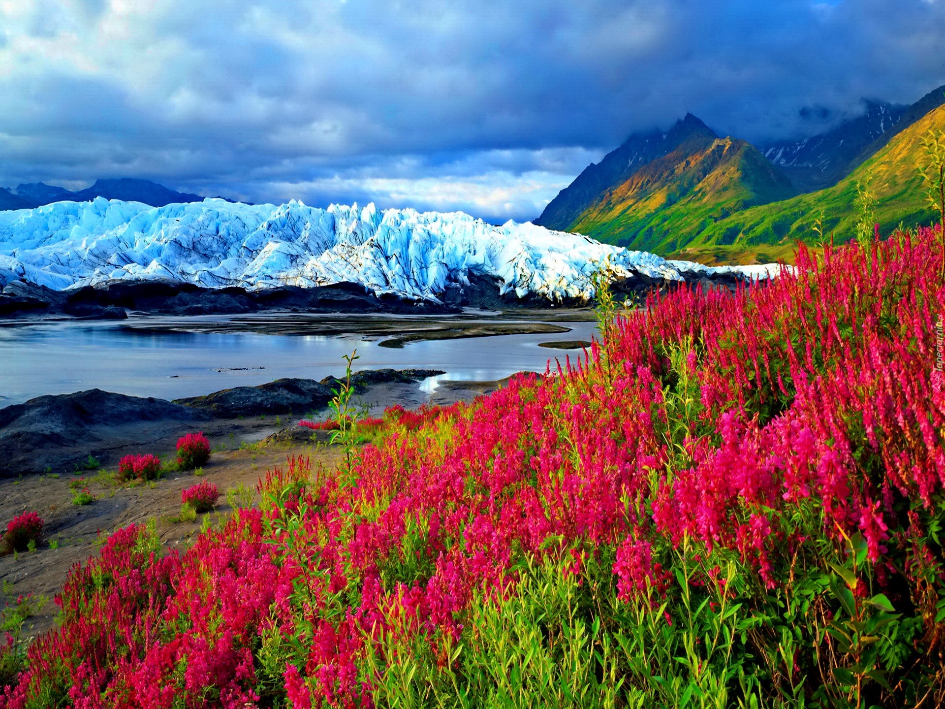 Edytor tapety: Góry, Rzeka, Kwiaty