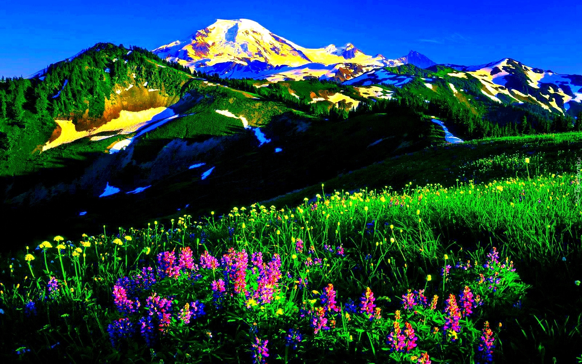 Edytor tapety: Góry, Łąka, Kwiaty