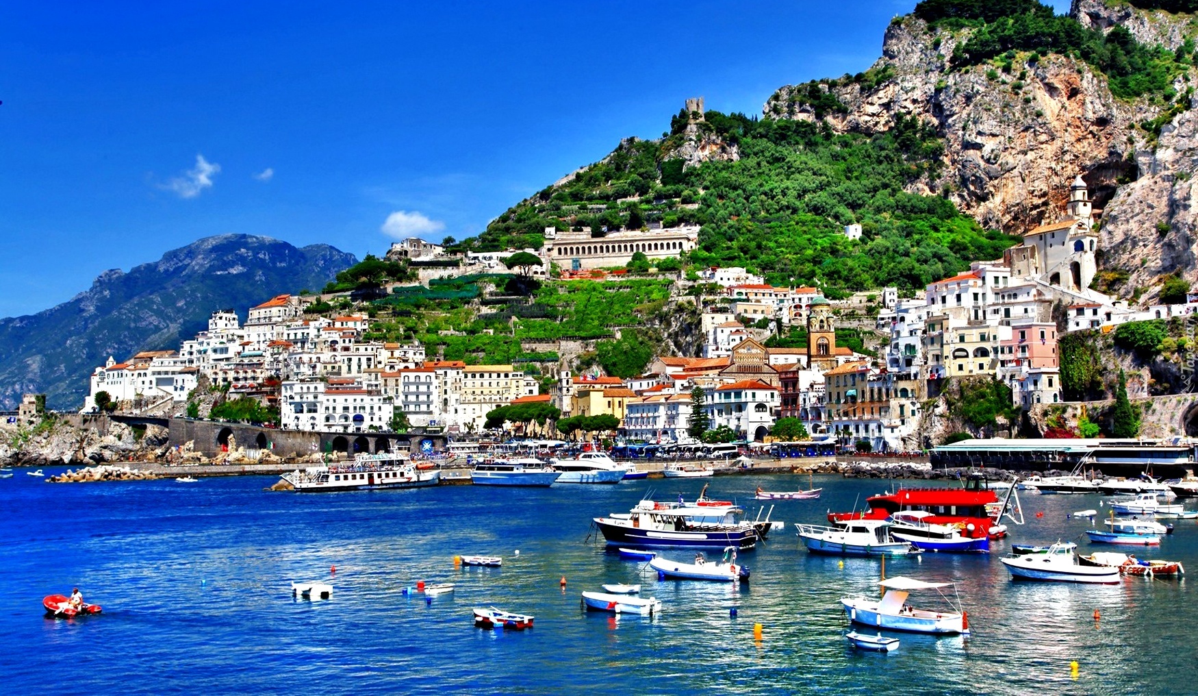 Edytor tapety: Włochy, Salerno, Góry, Motorówki, Jachty, Łódki