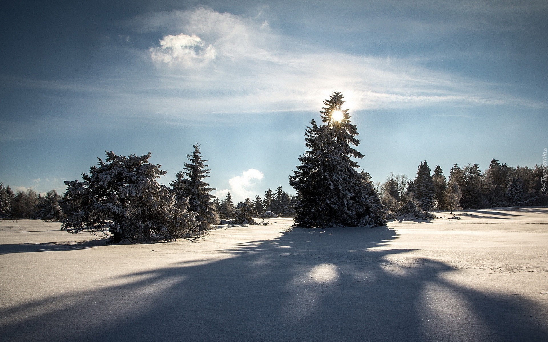 Edytor tapety: Zima, Świerki, Przebijające Światło