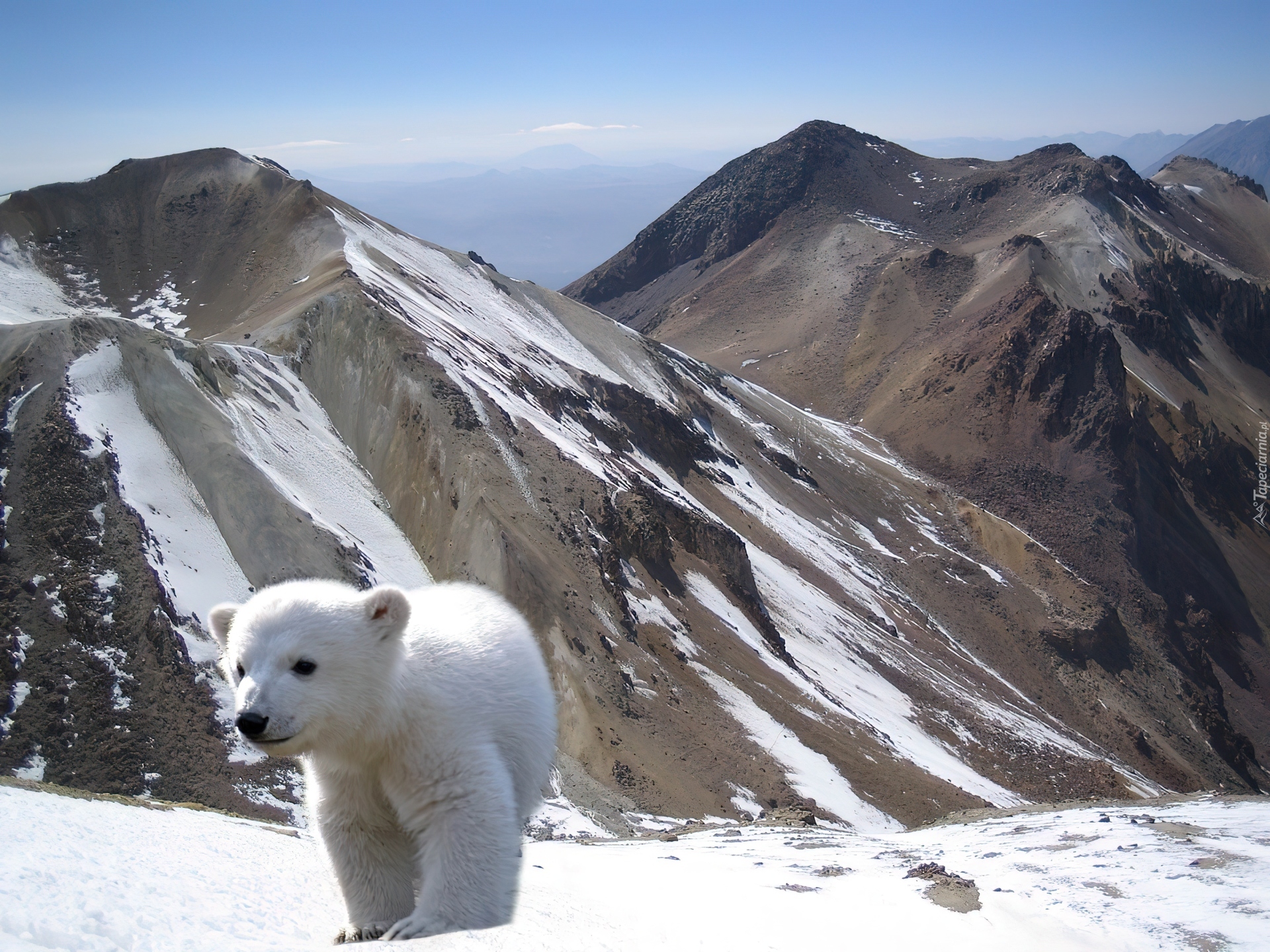 Edytor tapety: Mały, Niedzwiadek, Góry, Śnieg