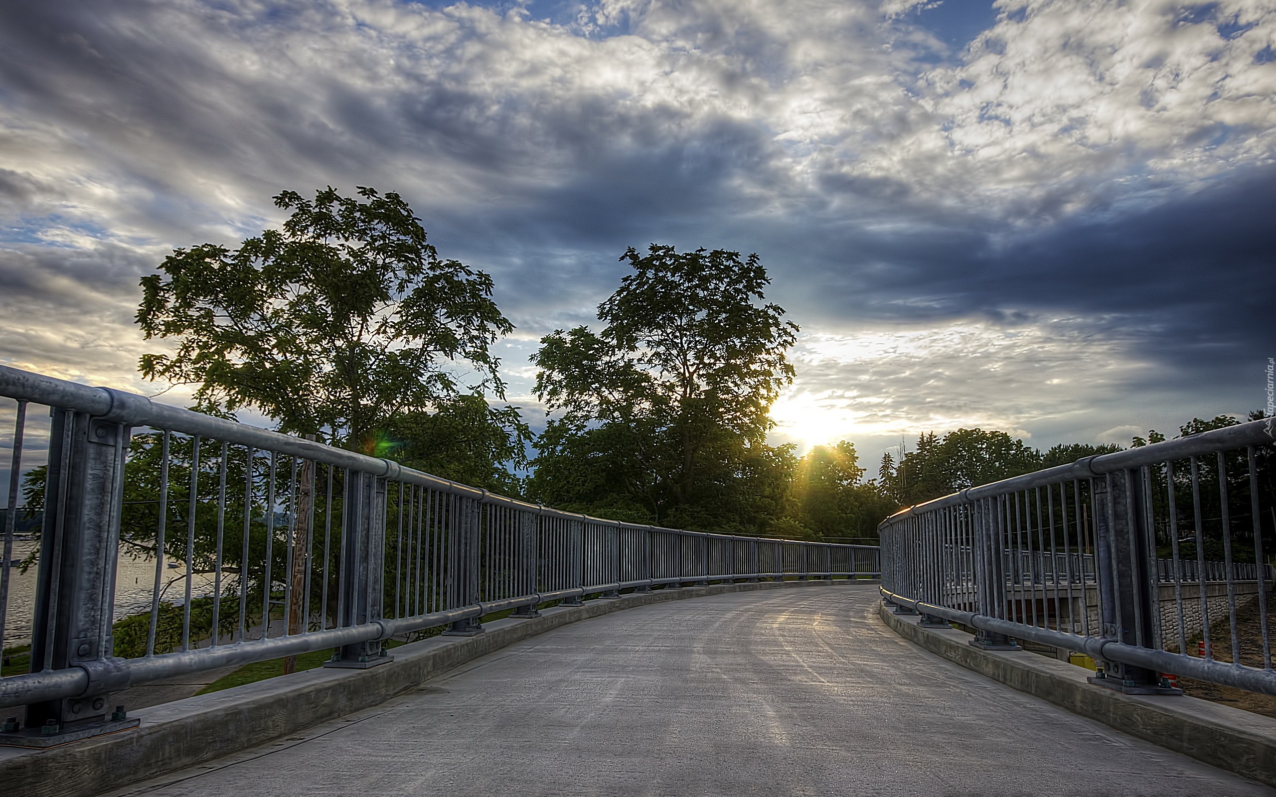 Edytor tapety: Droga, Most, Wschód, Słońca