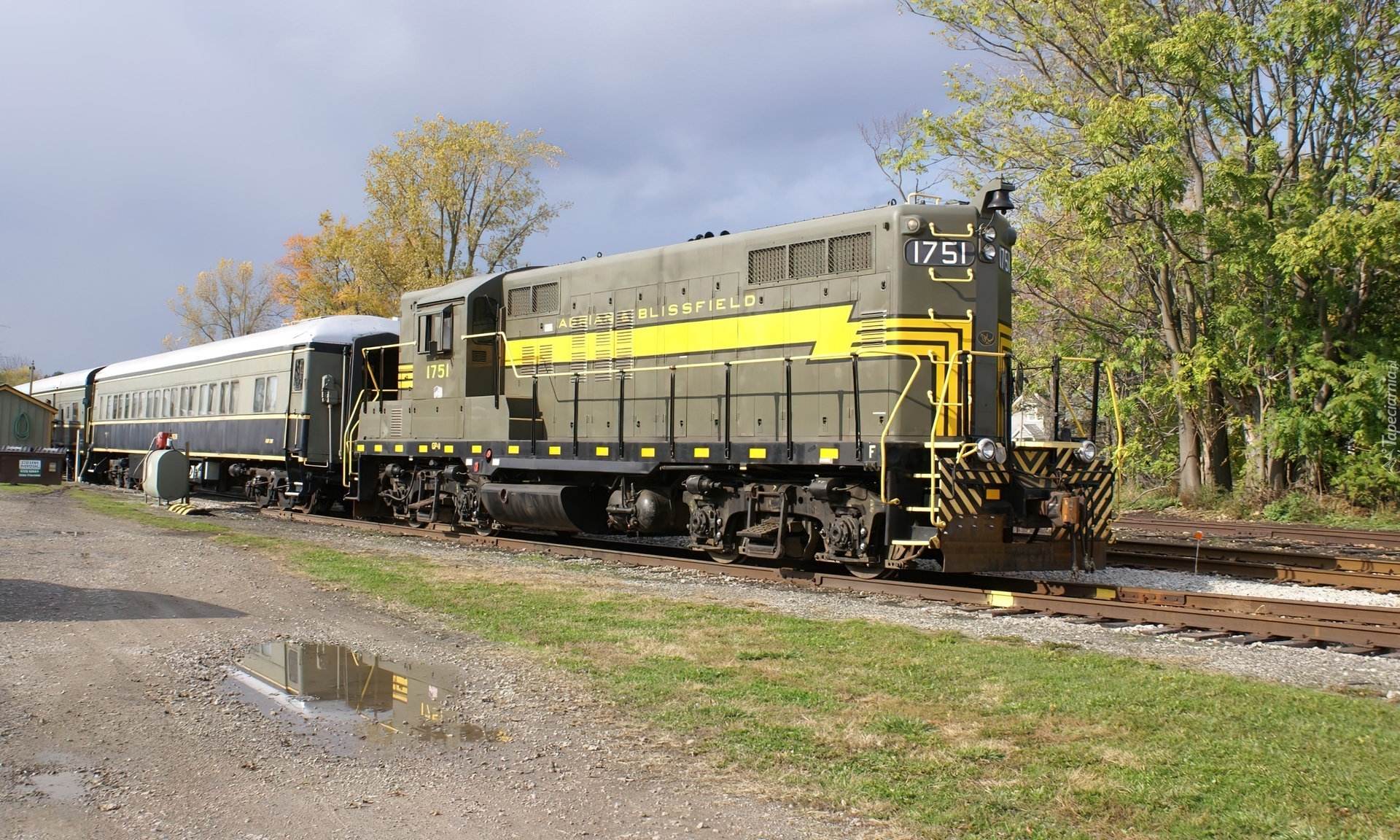 Edytor tapety: Lokomotywa, Wagony, Tory, Drzewa