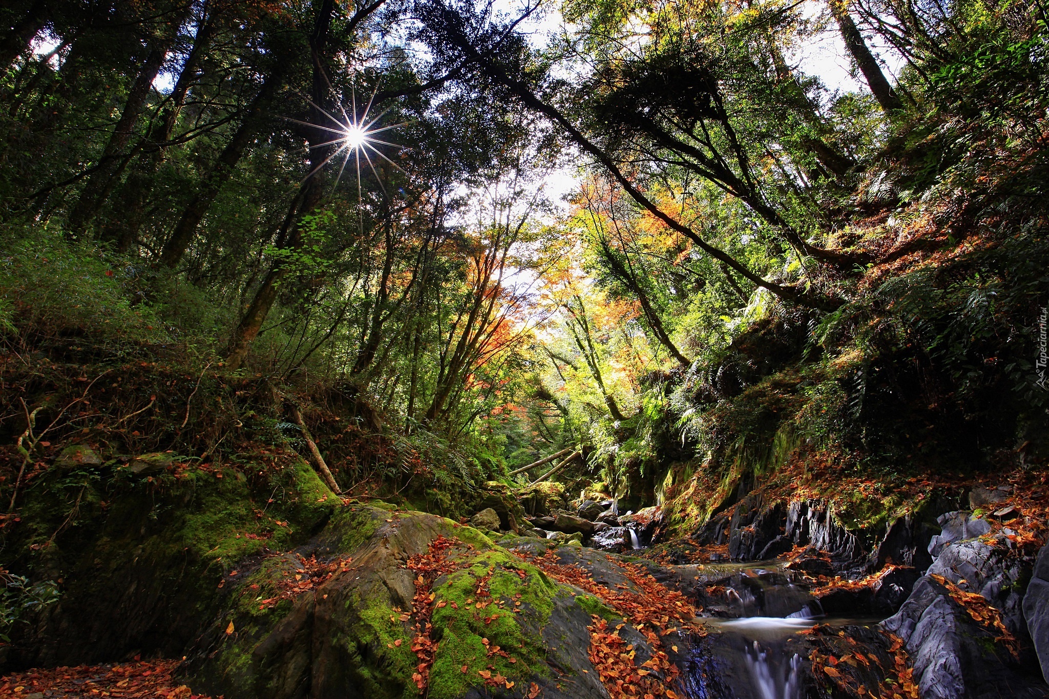 Edytor tapety: Las, Strumyk, Promienie Słońca, Jesień