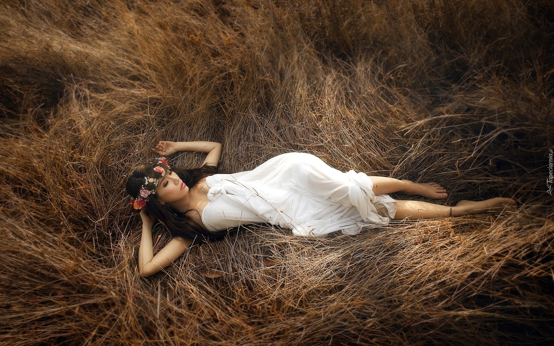 Edytor tapety: Modelka, Wianek, Trawa