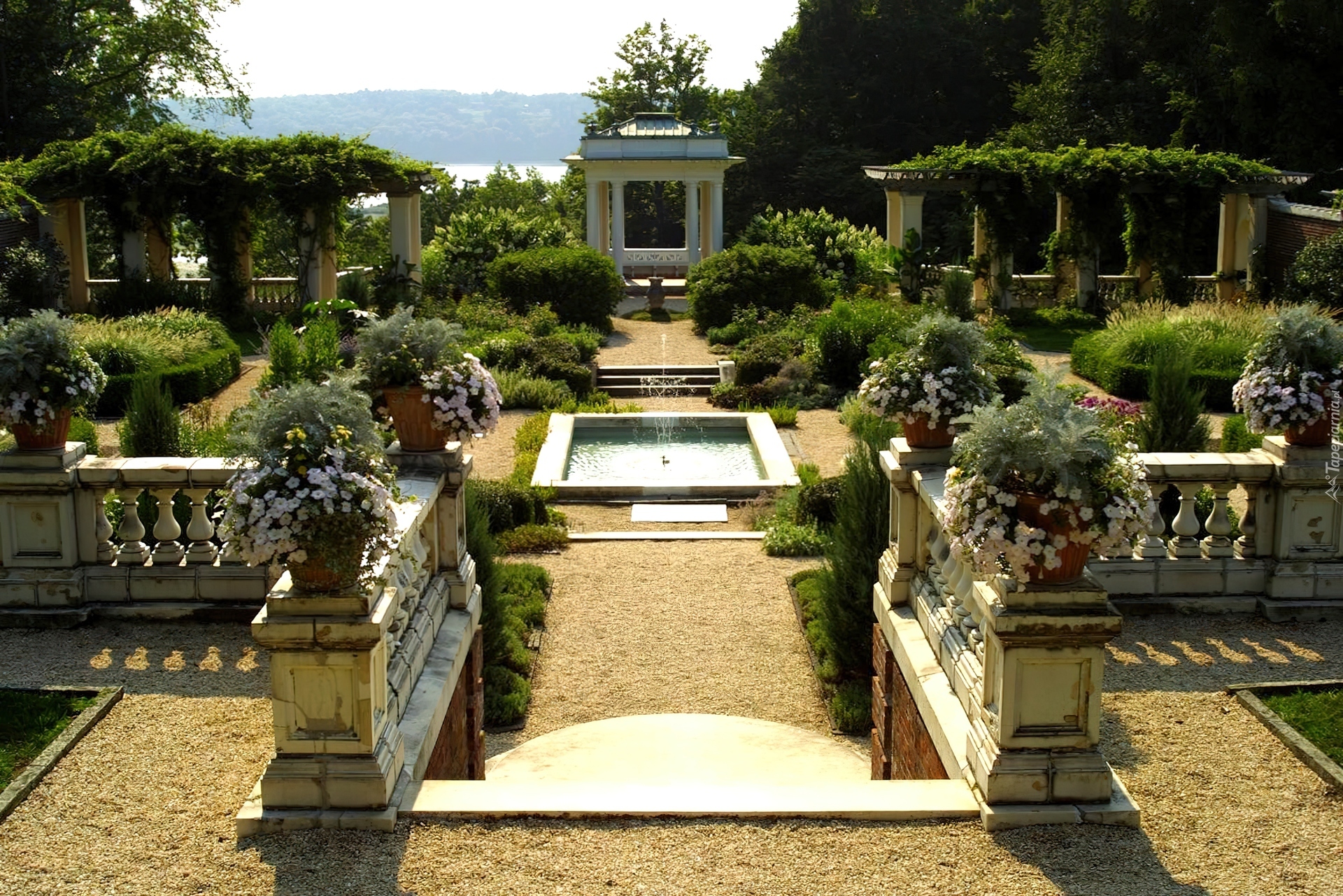 Edytor tapety: Ogródek, Fontanna, Rośliny