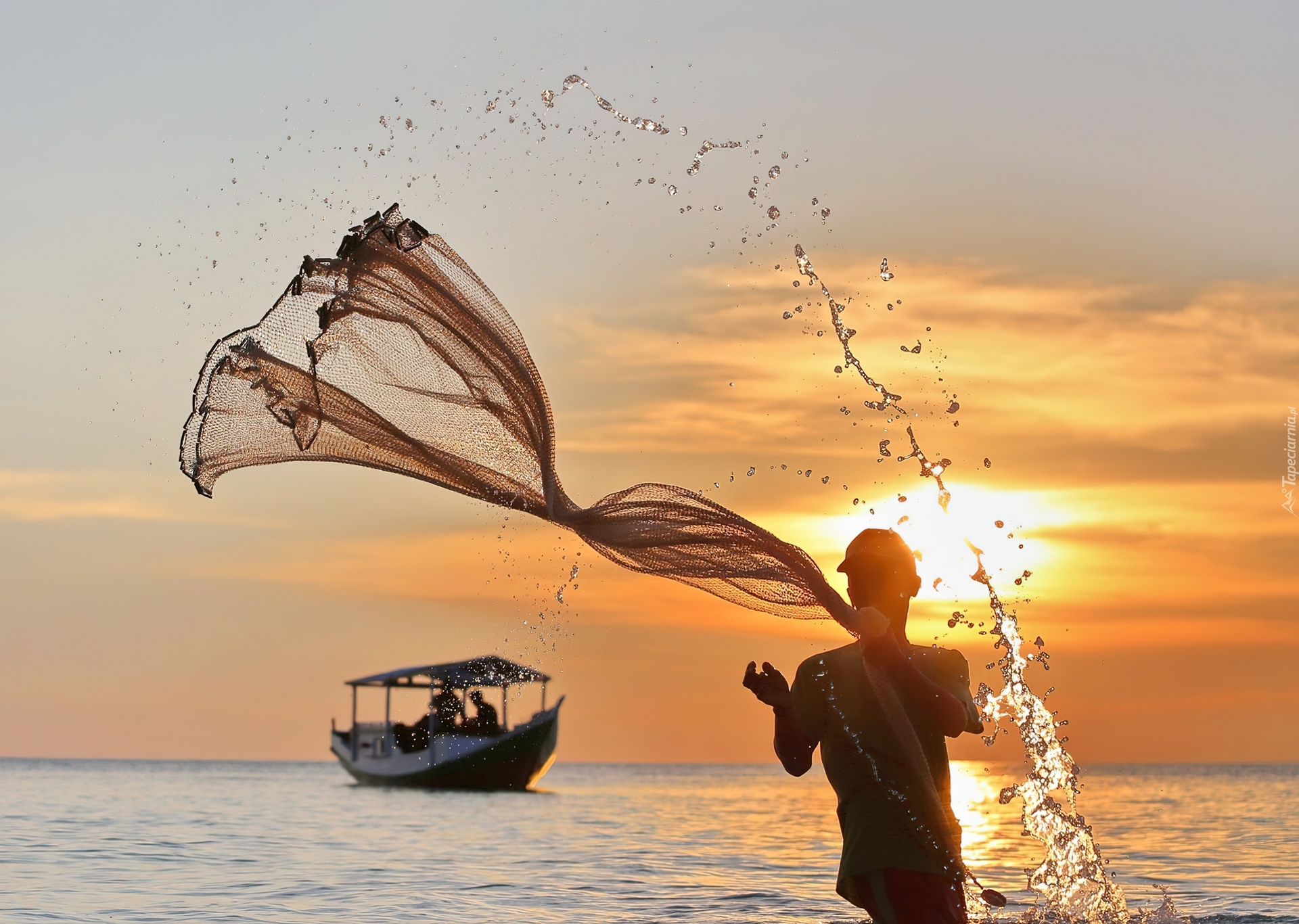 Edytor tapety: Morze, Kuter, Rybak, Sieć