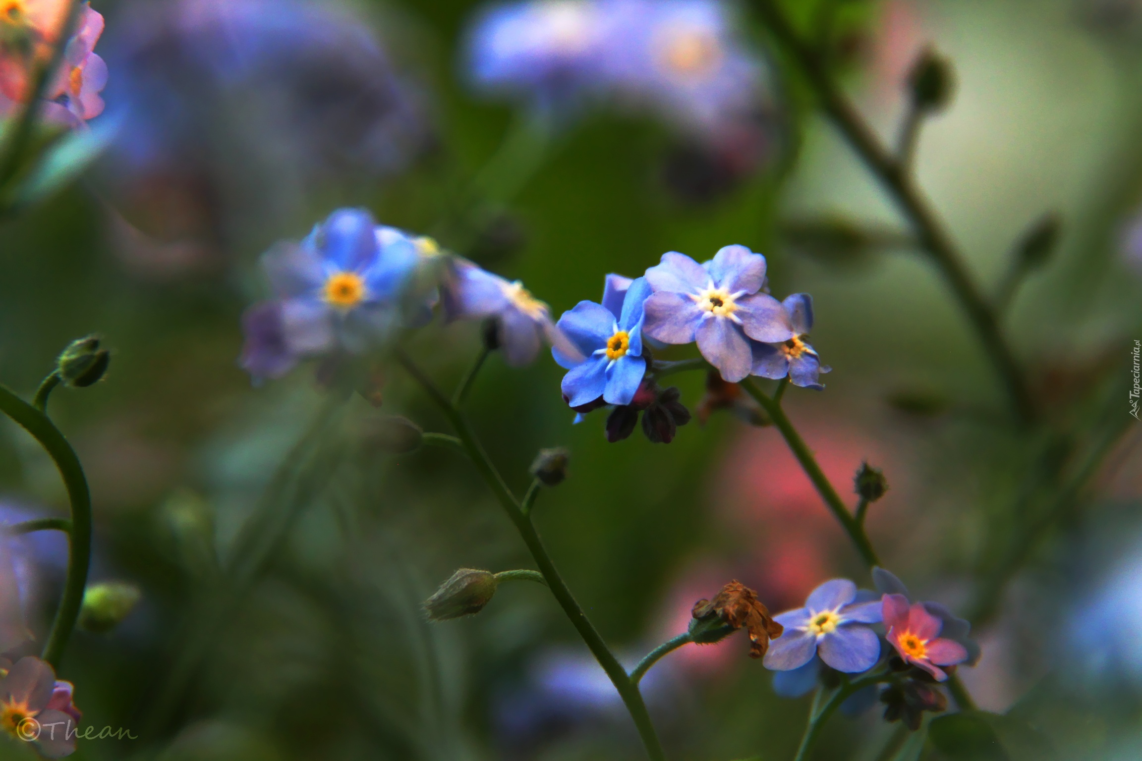 Edytor tapety: Różowe, Niebieskie, Niezapominajki