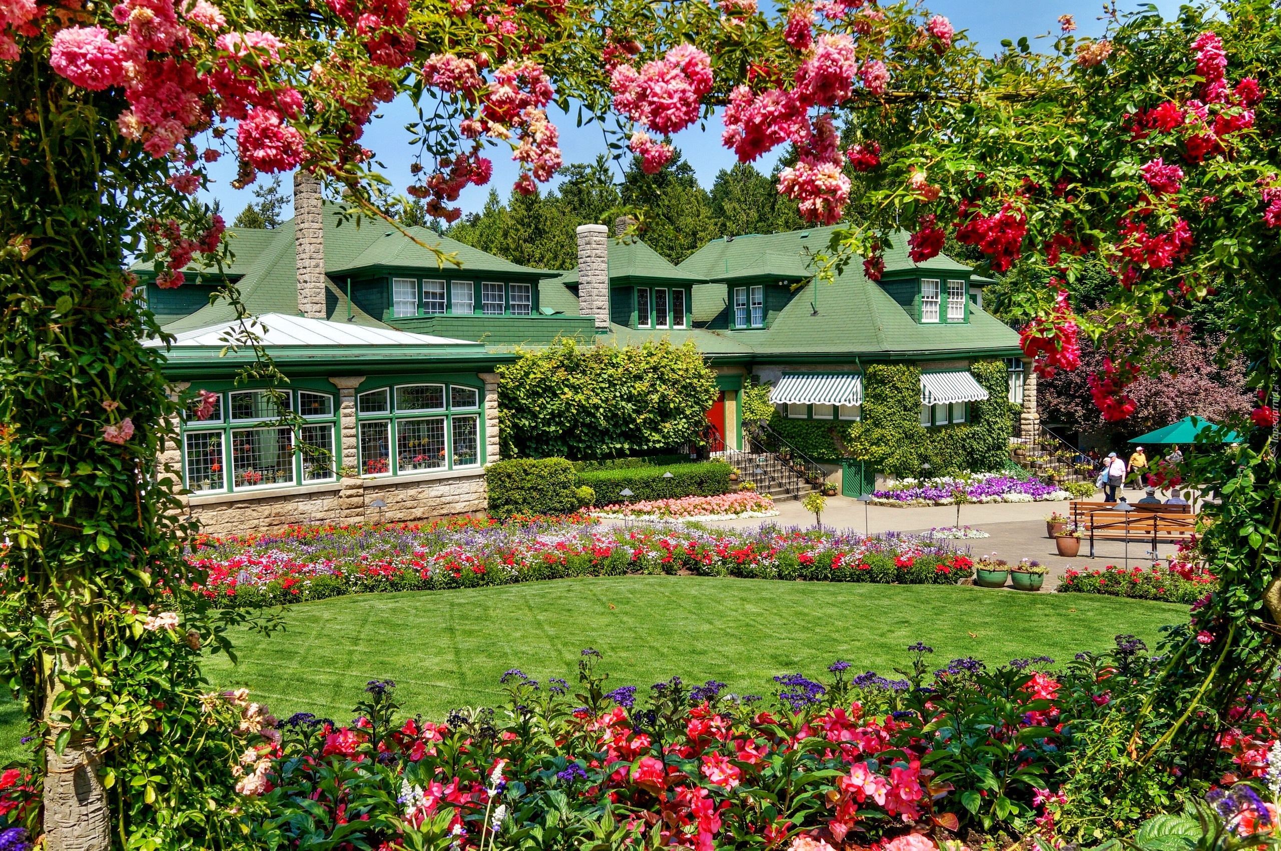 Edytor tapety: Park, Budynek, Kwiaty