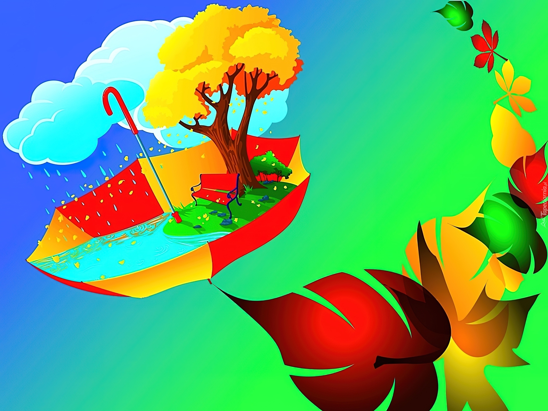 Edytor tapety: Kolorowe, Liście, Drzewo, Parasol, Jesień