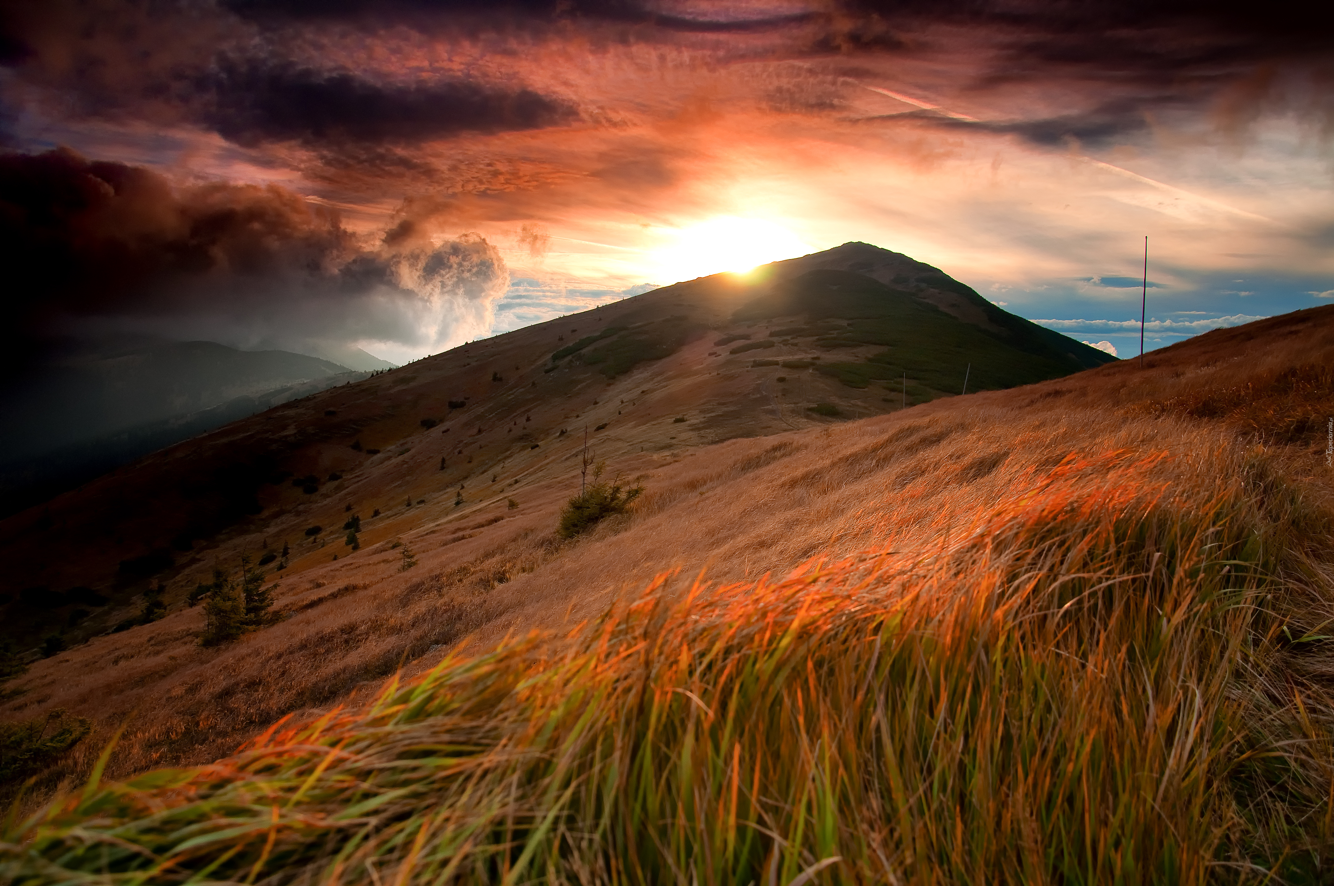 Edytor tapety: Góry, Chmury, Zachód, Słońca