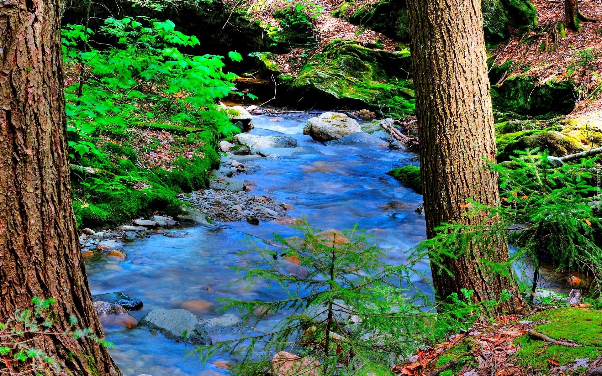 Edytor tapety: Górski, Potok, Kamienie, Roślinność