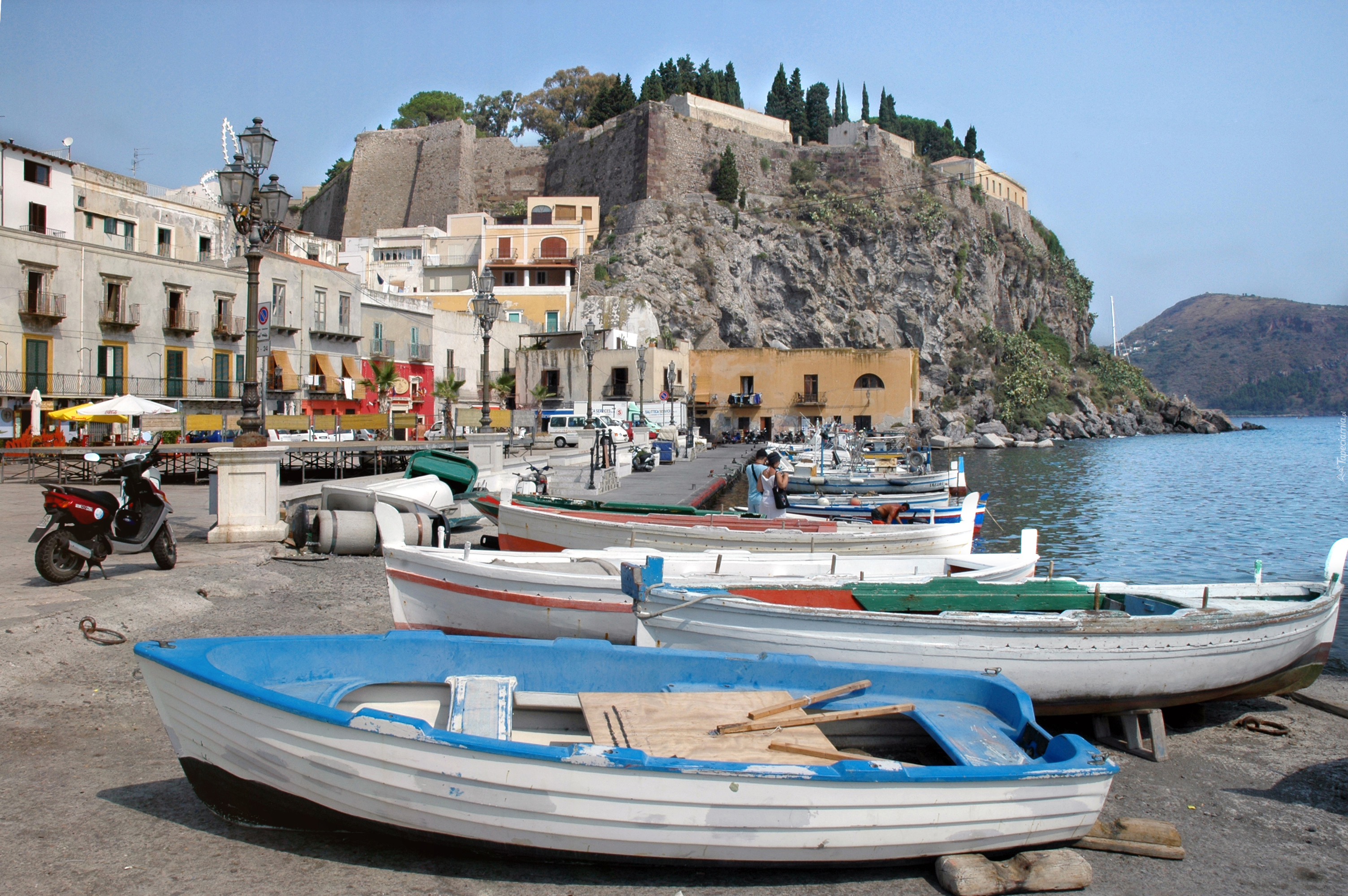 Edytor tapety: Miasteczko, Morze, Łódki