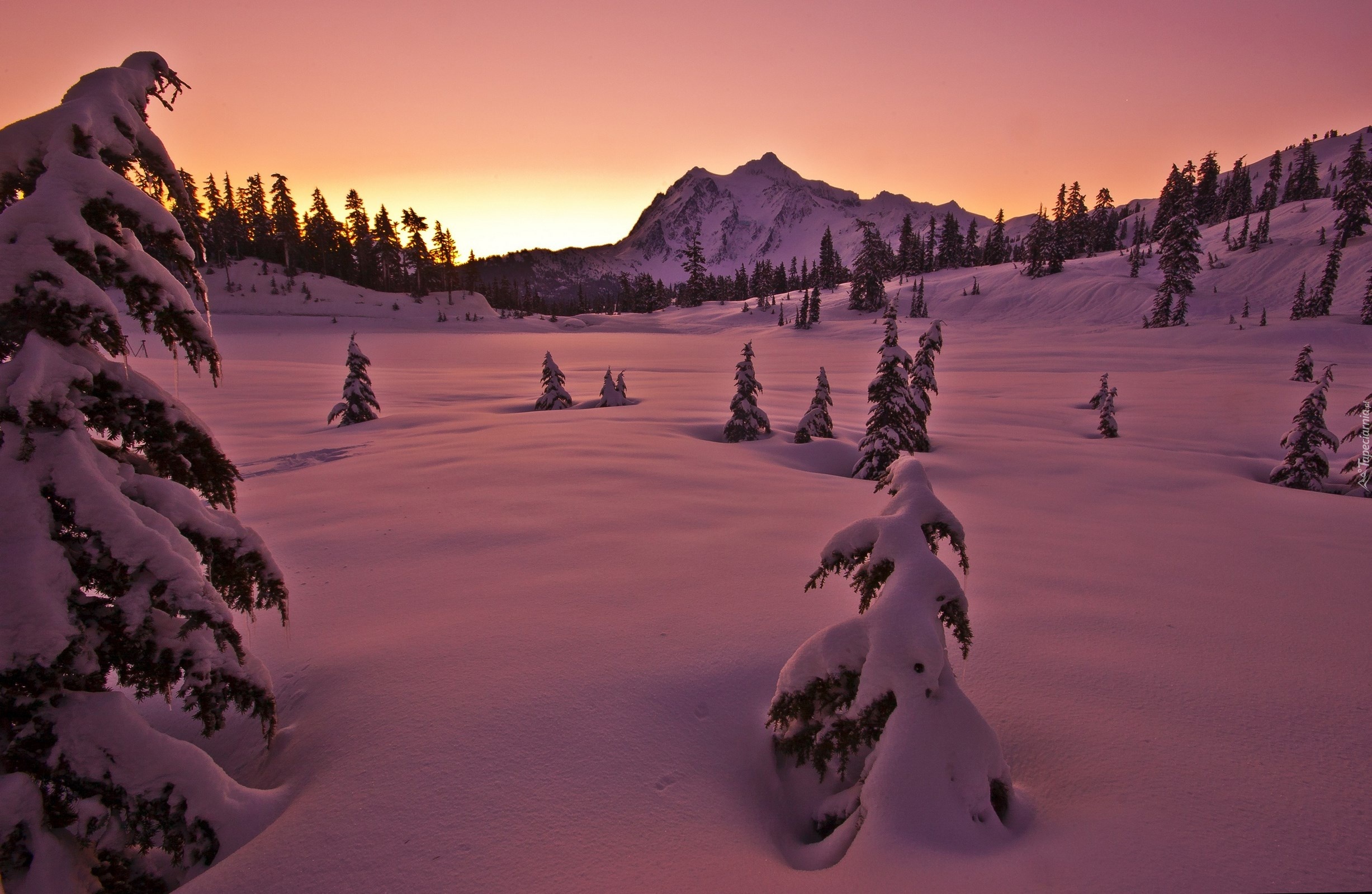 Edytor tapety: Góry, Zachód Słońca, Zima