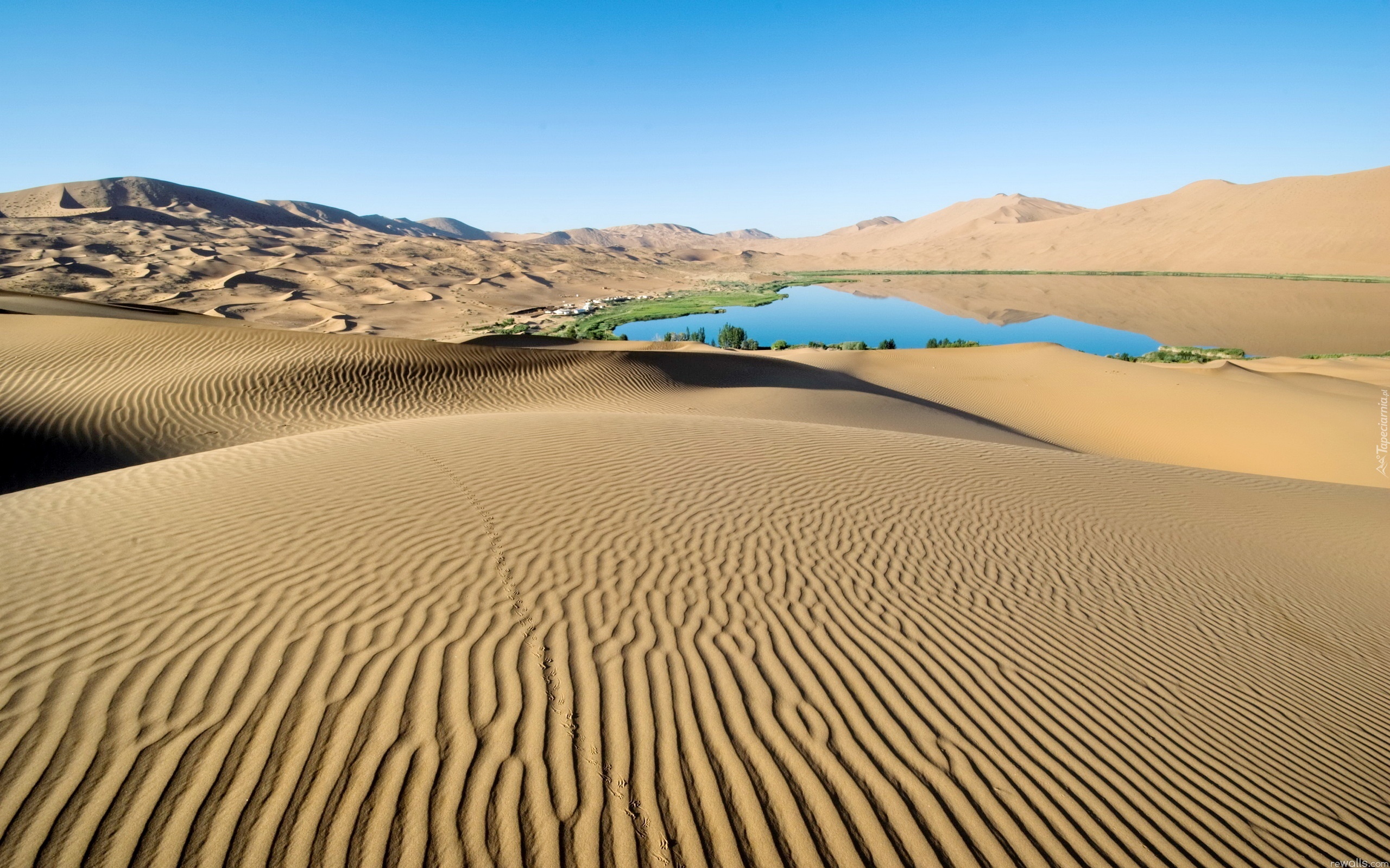 Edytor tapety: Pustynia, Wydmy, Jezioro