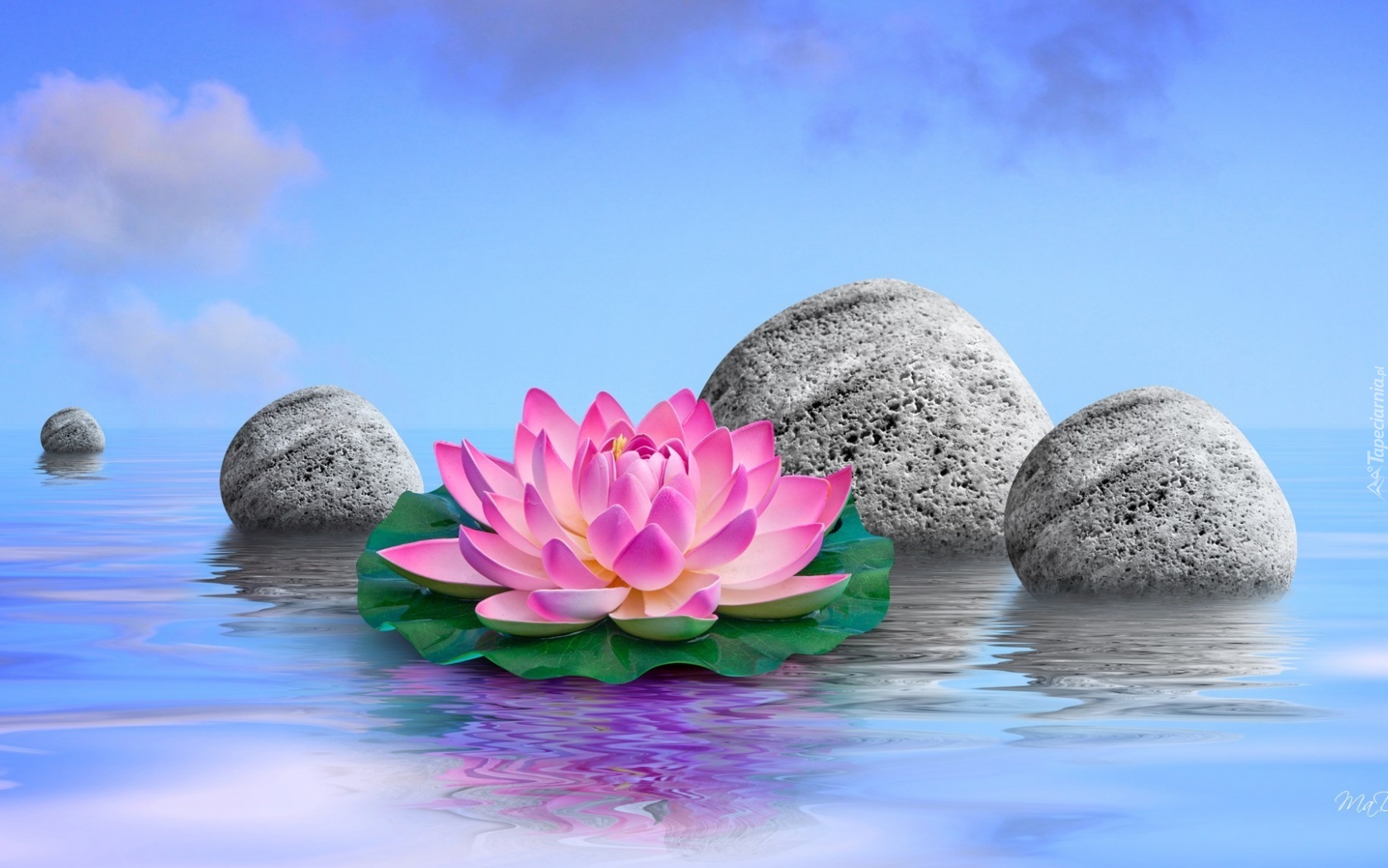Edytor tapety: Grafika, Lilia, Kamienie, Woda