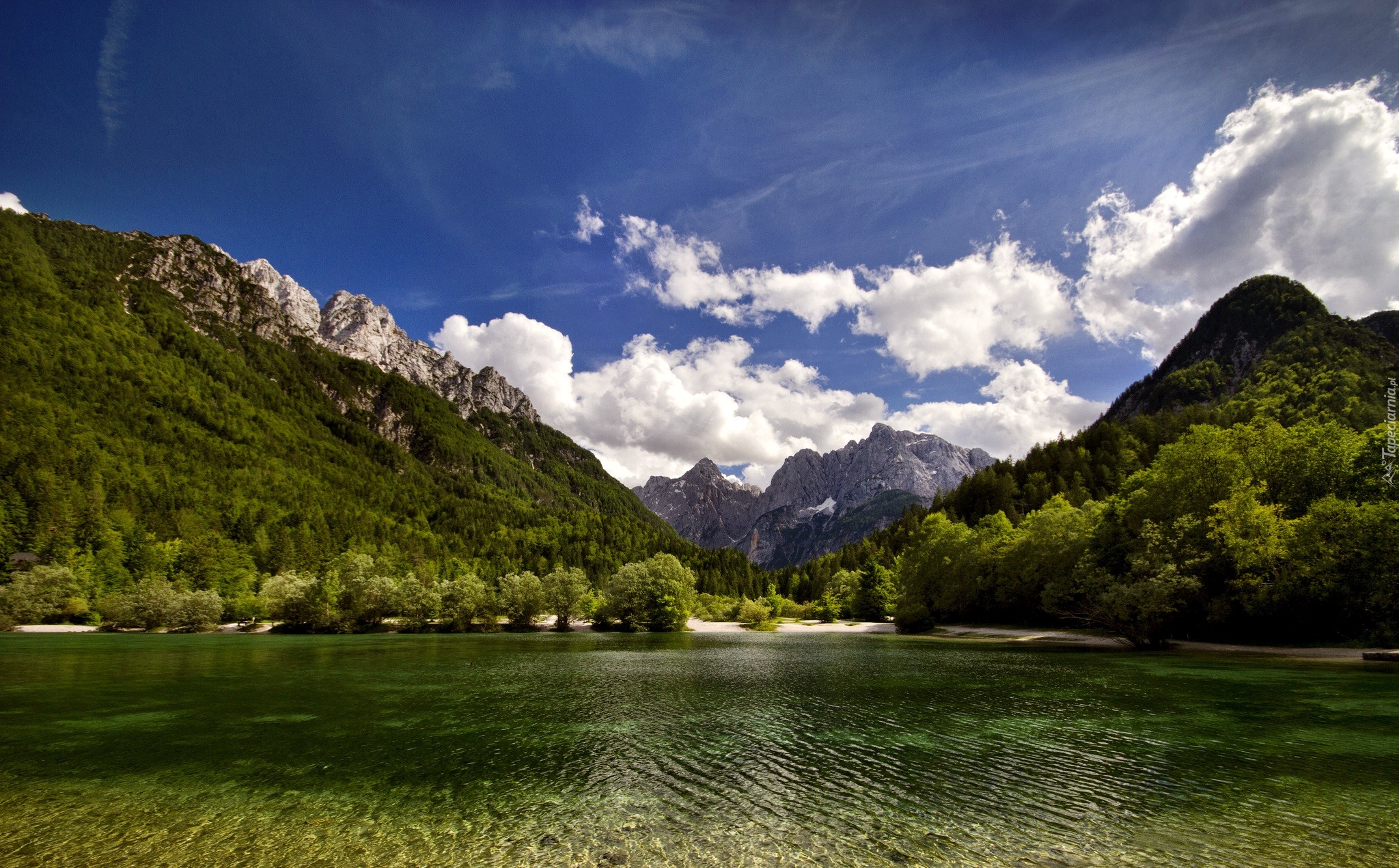 Edytor tapety: Jezioro, Lasy, Góry, Chmury