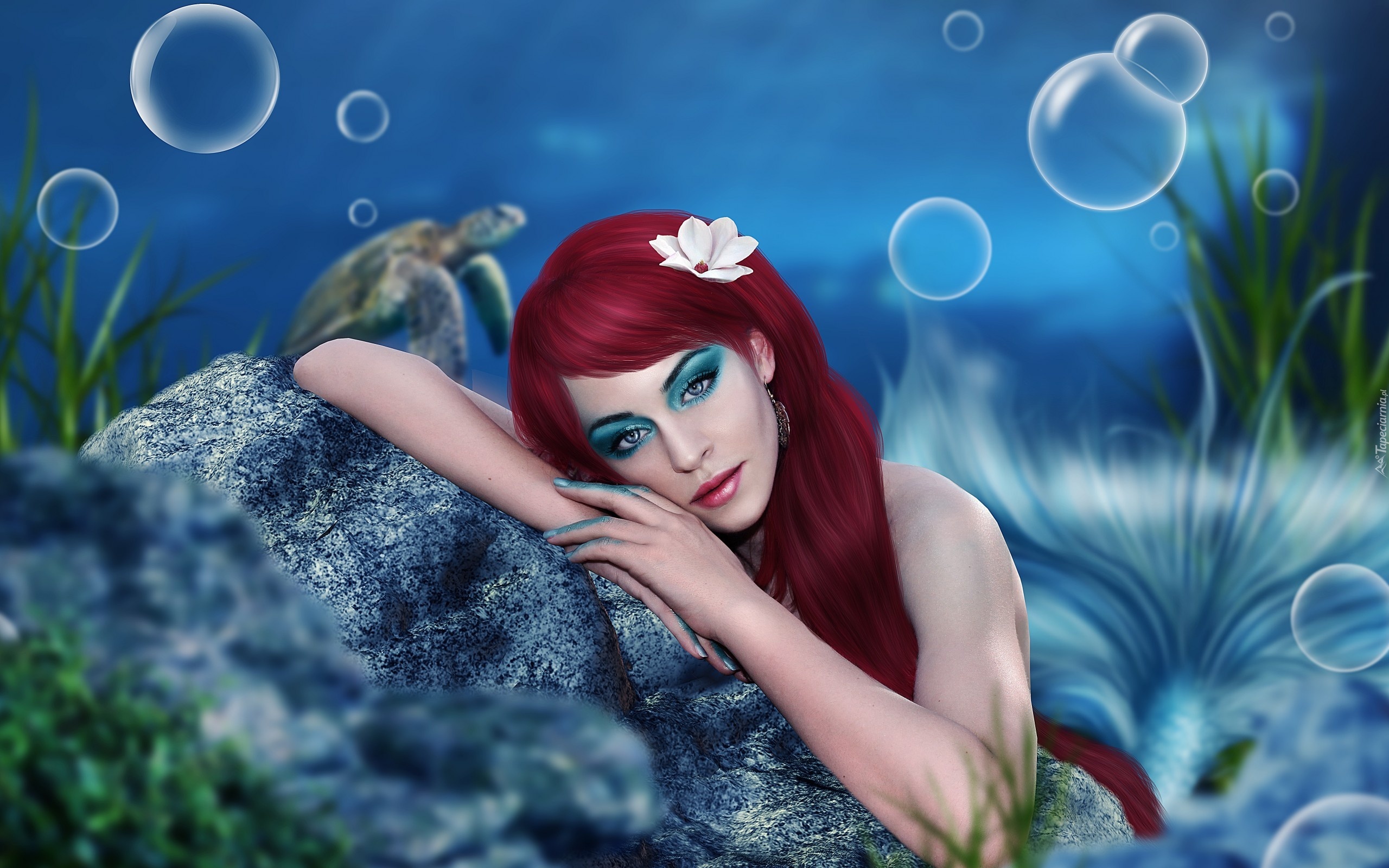 Edytor tapety: Kobieta, Animacja, Podwodny, Świat