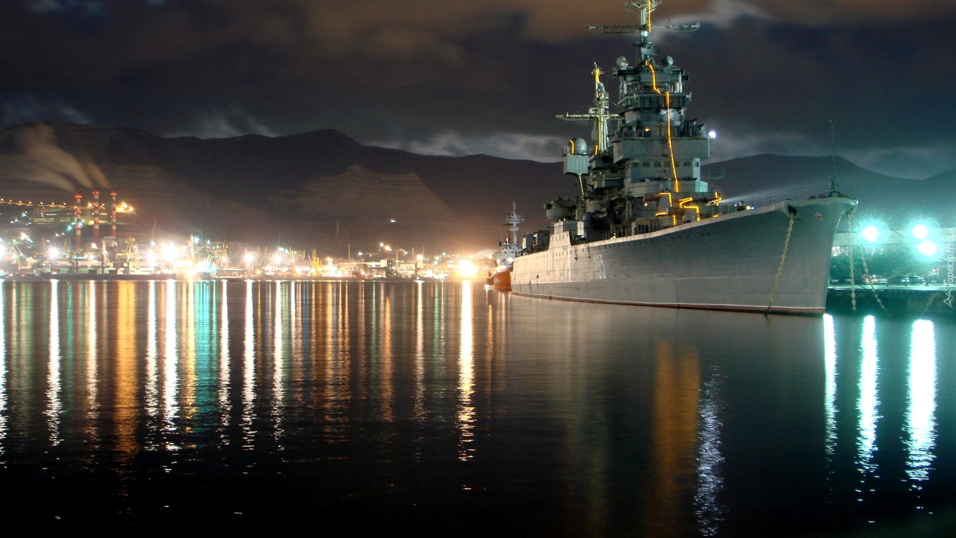 Edytor tapety: Statek, Wojskowy, Port, Noc, Odbicie