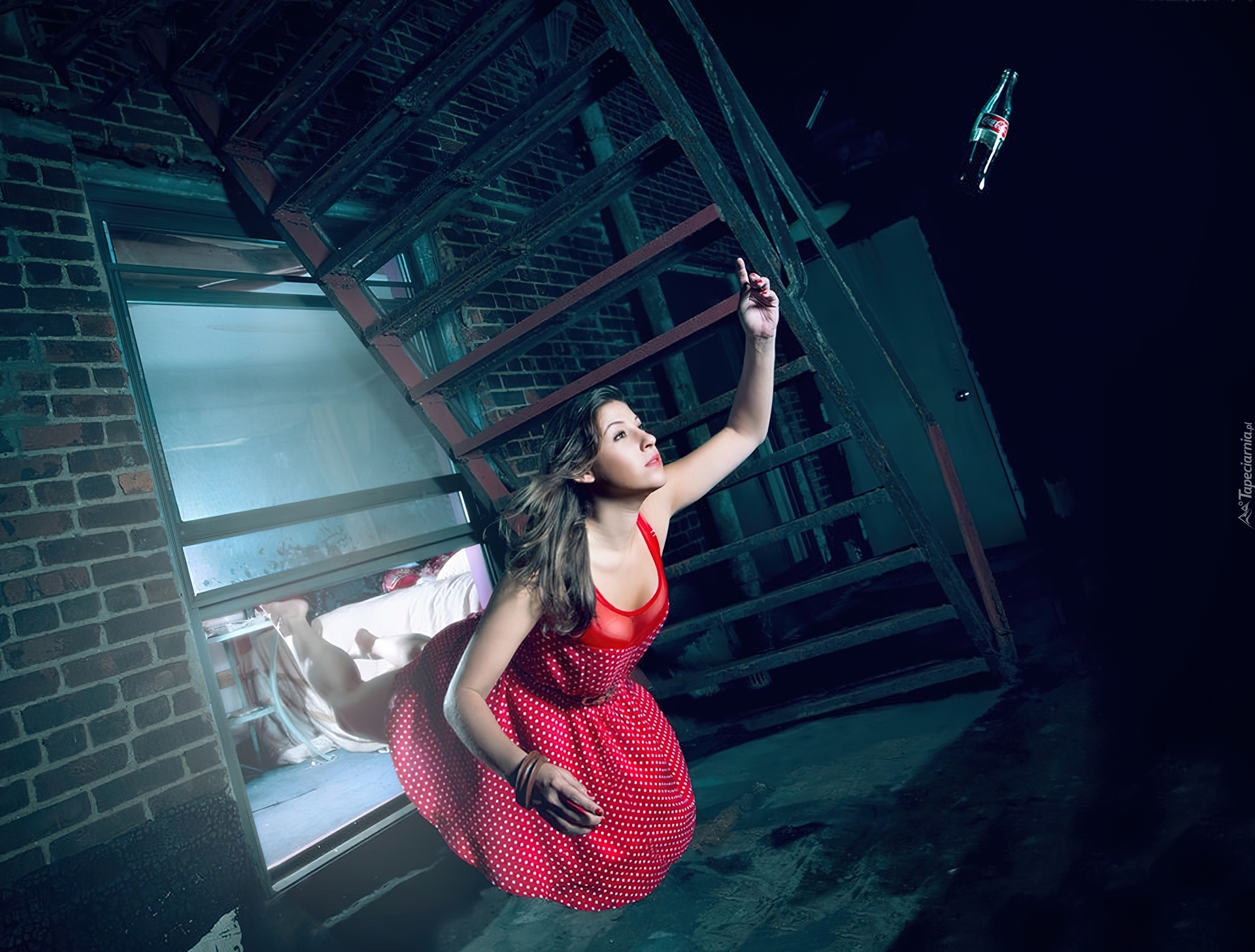 Edytor tapety: Kobieta, Czerwona, Suknia, Coca-Cola