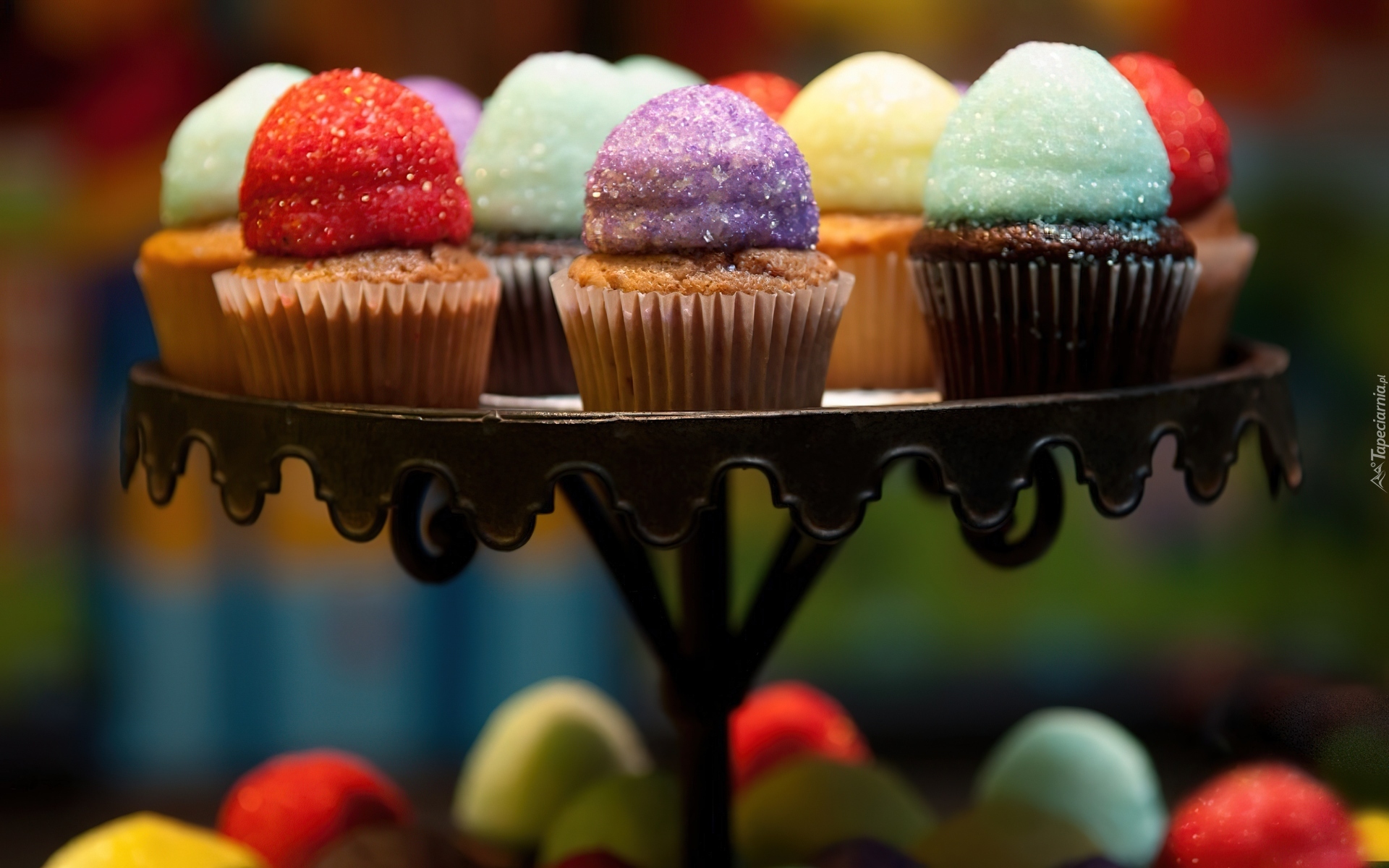 Edytor tapety: Babeczki, Kolorowe, Patera
