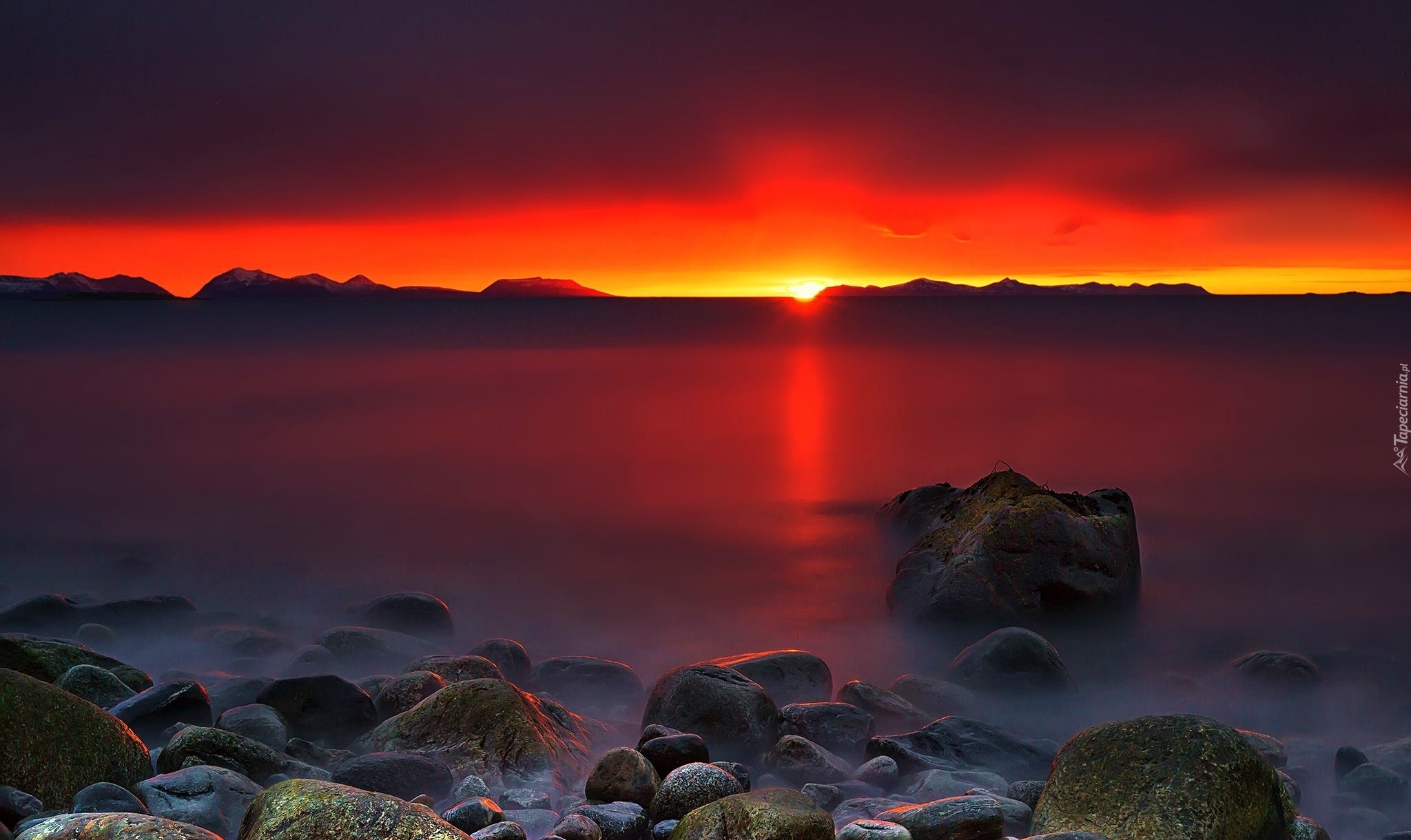 Edytor tapety: Zachód, Słońca, Kamienie, Morze