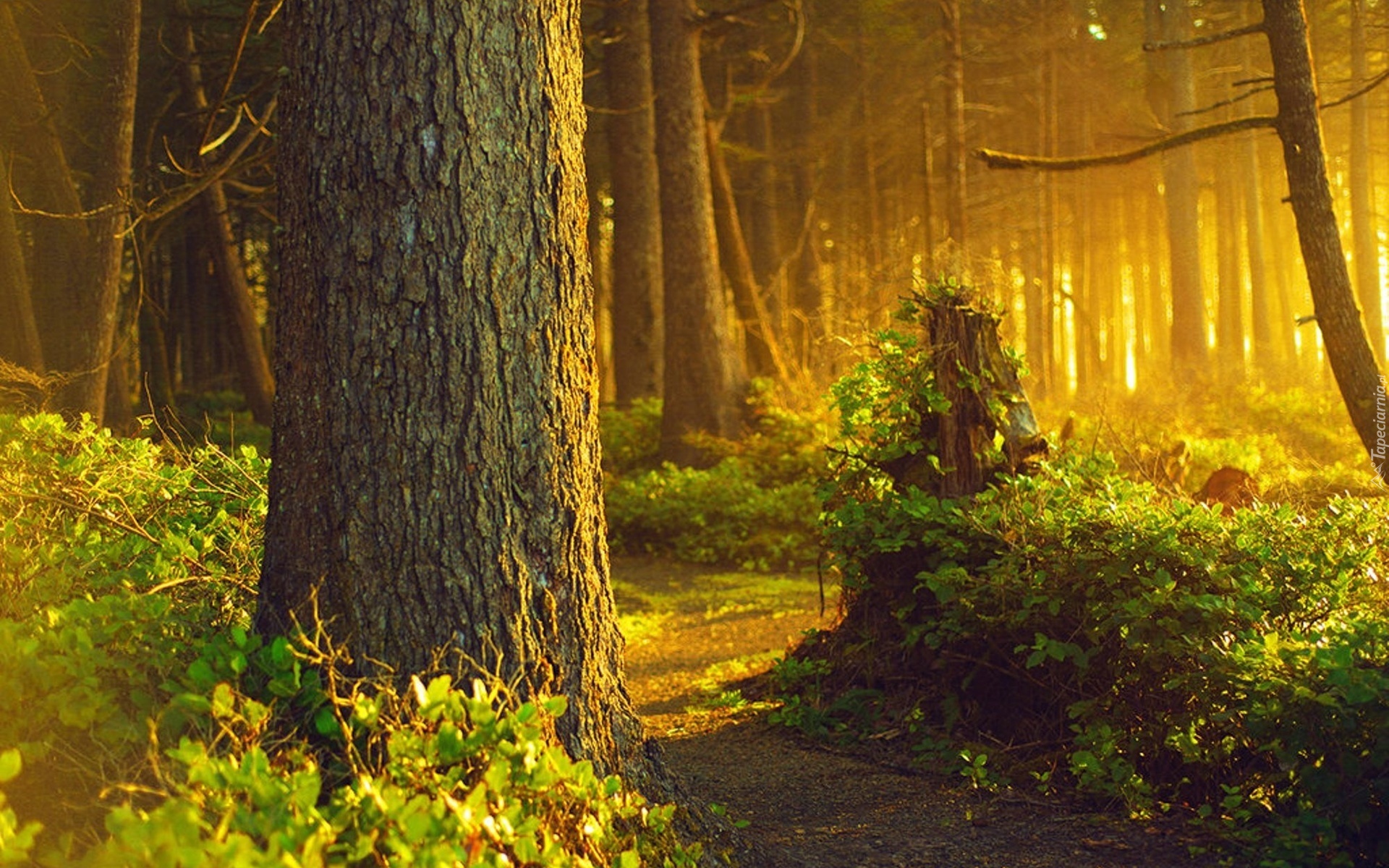 Edytor tapety: Las, Ścieżka, Przebijające, Światło, Krzewy