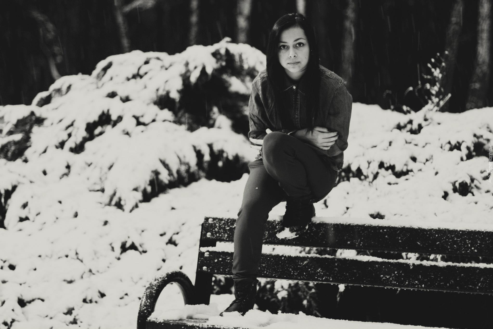 Edytor tapety: Kobieta, Brunetka, Ławka, Zima