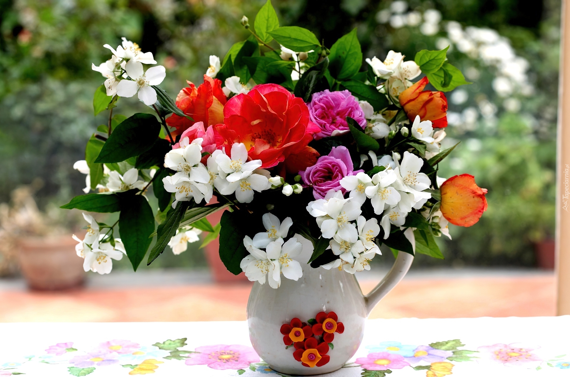 Edytor tapety: Kompozycja, Wazonik, Jaśmin, Róże