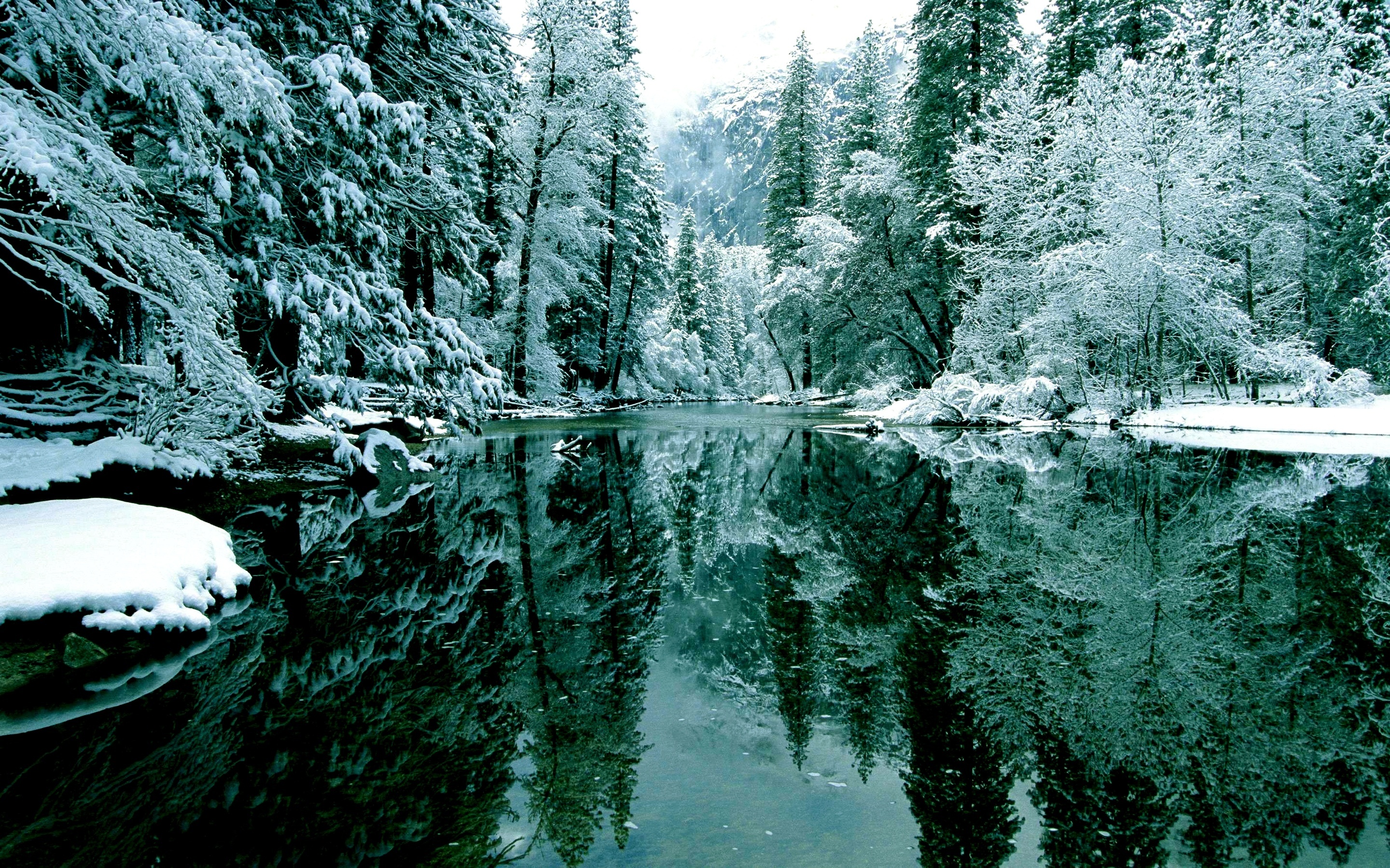 Edytor tapety: Jezioro, Drzewa, Śnieg, Odbicie