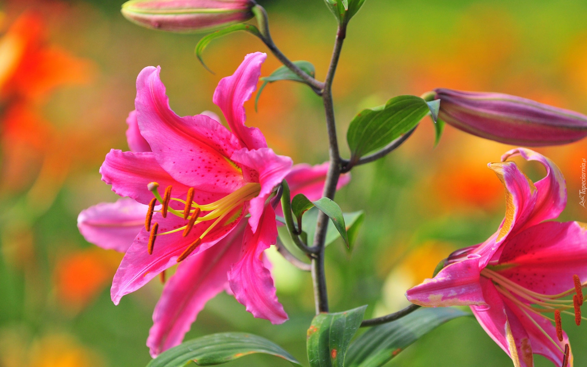 Edytor tapety: Lilia, Pąki, Kwiat, Liscie, Rozmycie